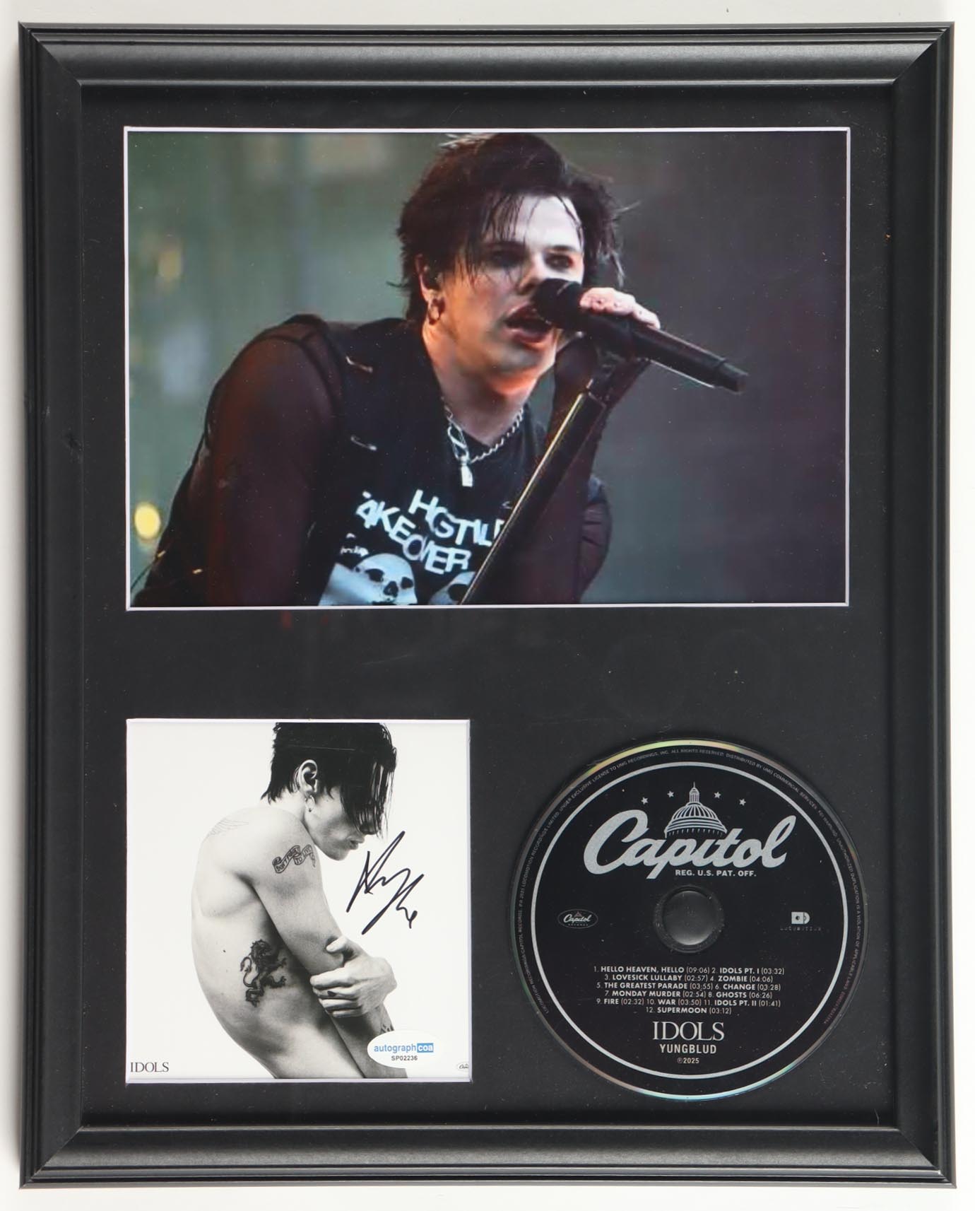 Custom frame measures approximately 12" x 15" in size. Features a "IDOLS" CD album insert that has been hand-signed by Yungblud. The CD is included as shown.