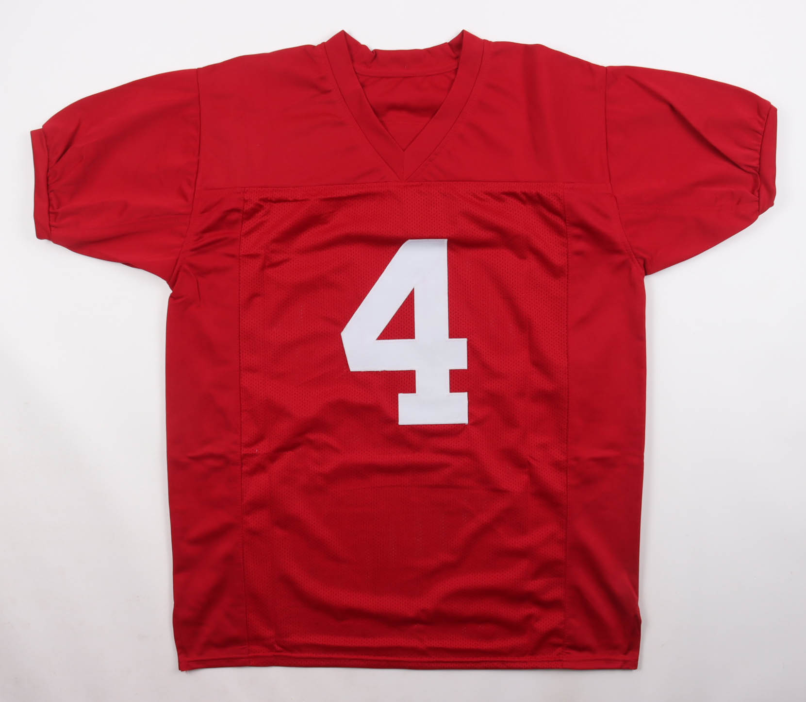 Custom jersey with everything sewn on, size XL. Hand-signed by Jerry Jeudy. Please note, the signature has bled.