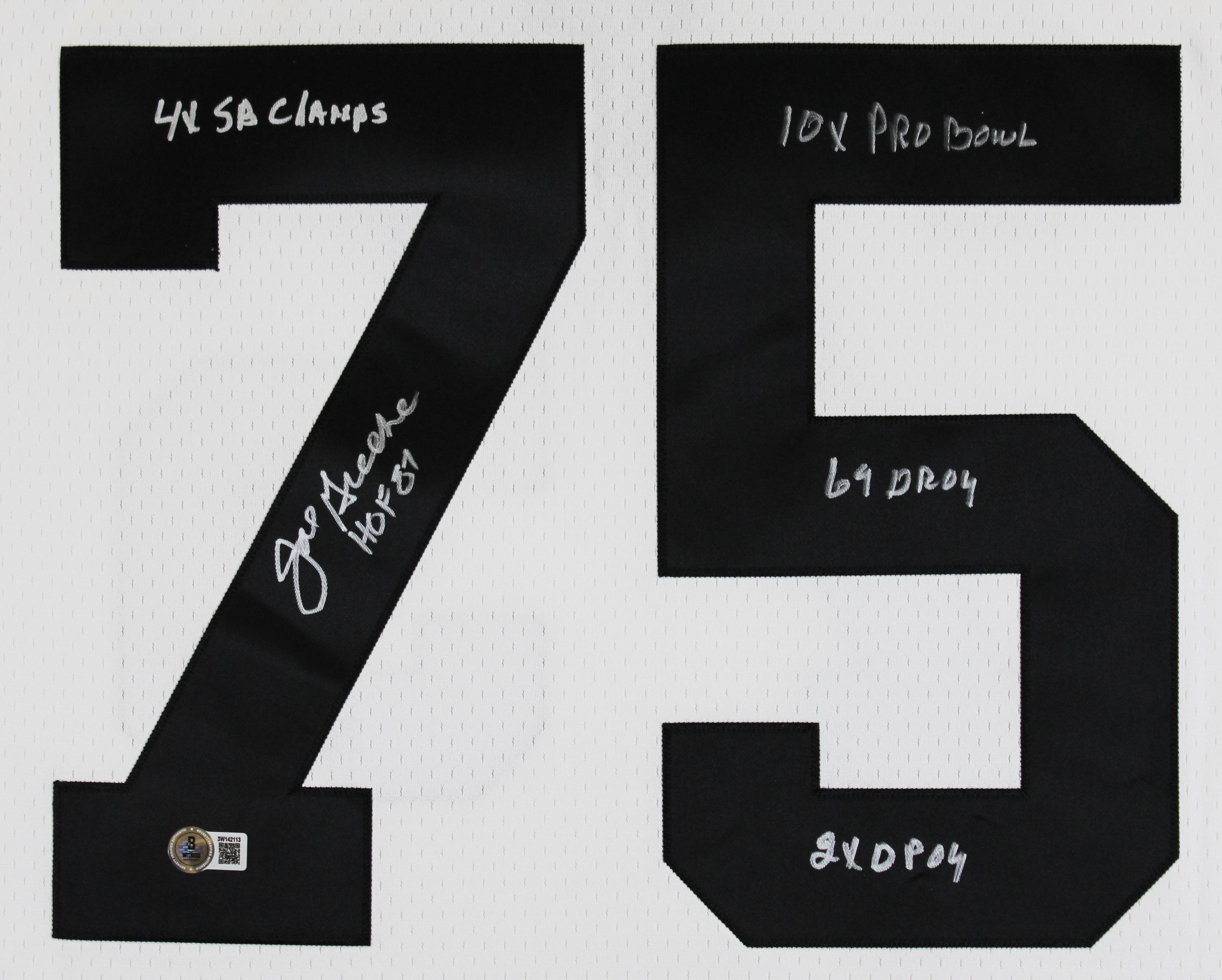 Mitchell & Ness jersey with everything sewn on, size XL. Hand-signed and inscribed by Joe Greene (Pittsburgh Steelers, HOF).