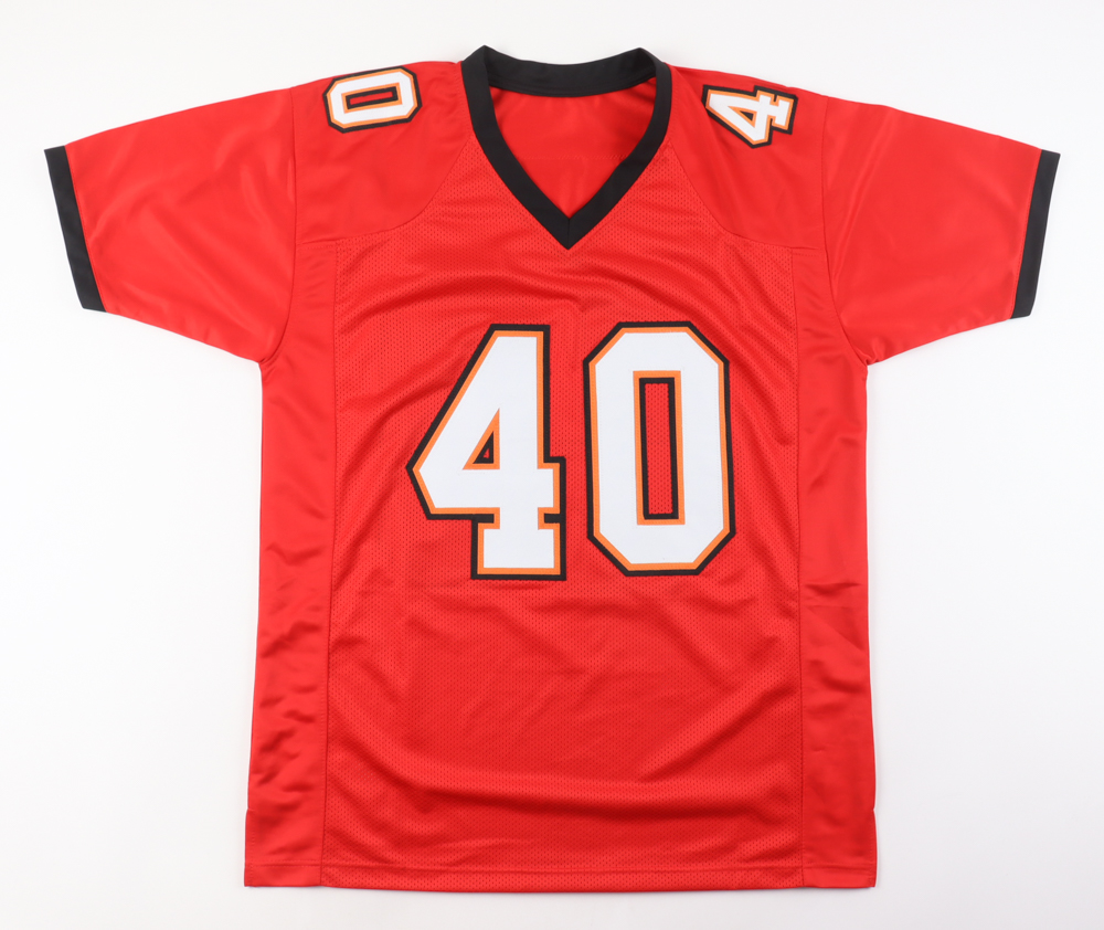 Custom jersey. Everything sewn on, size XL. Hand-signed by Mike Alstott.