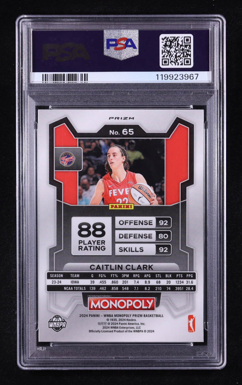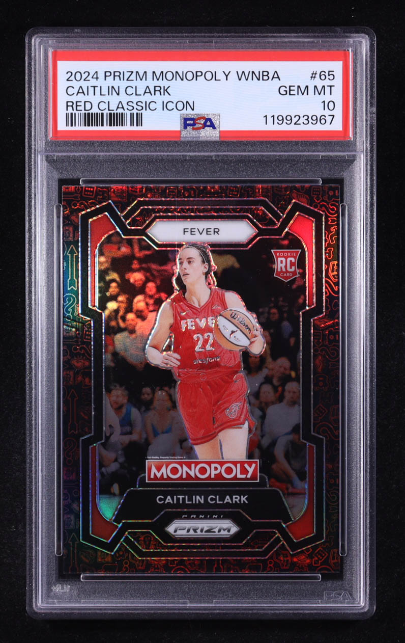 Caitlin Clark 2024 Panini Prizm Monopoly WNBA Red Classic Icons #65 RC (PSA 10)