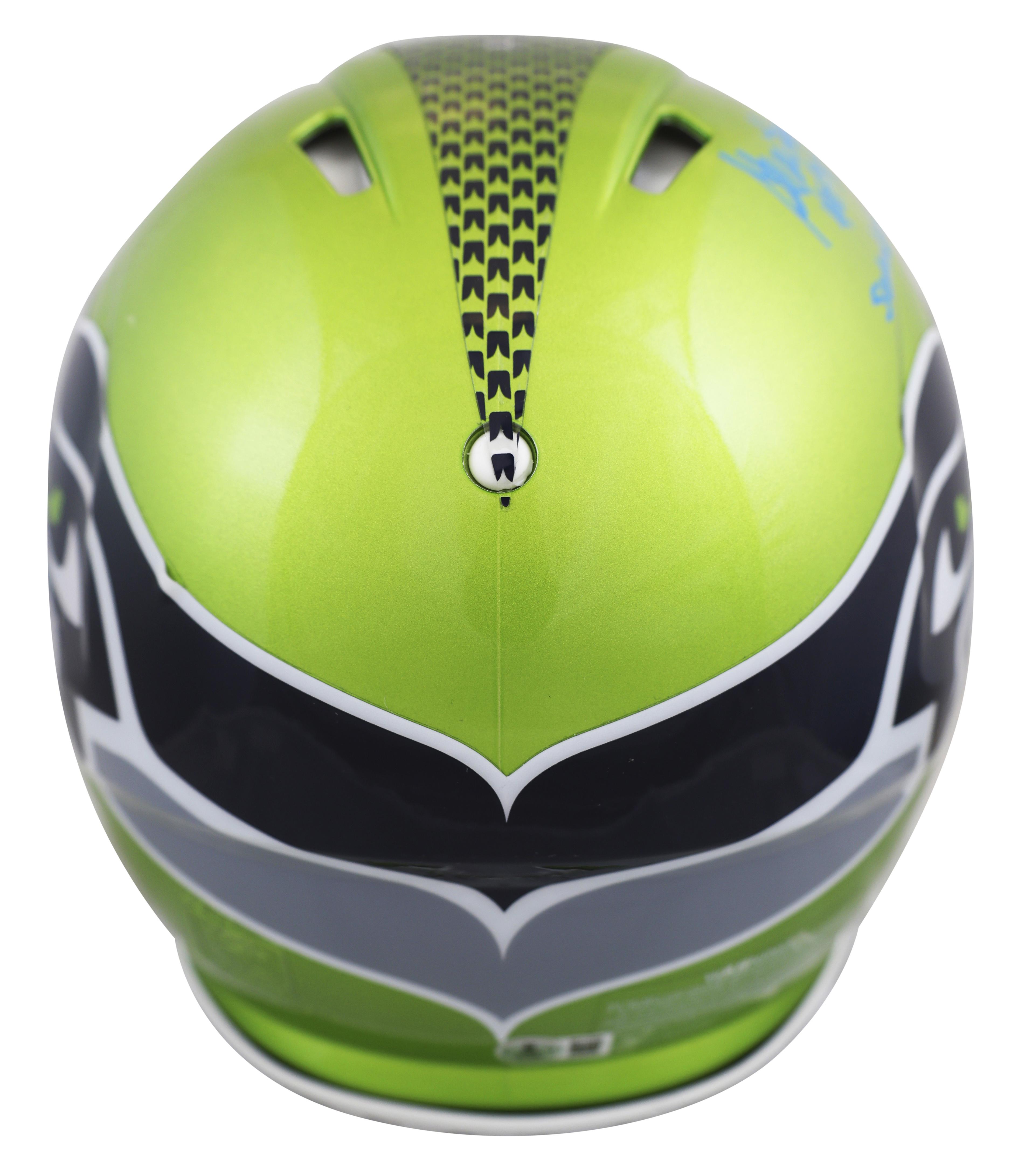 Riddell Seattle Seahawks full-size authentic on-field flash alternate speed helmet has been hand-signed and inscribed by Steve Largent (HOF). Display case is included as shown.