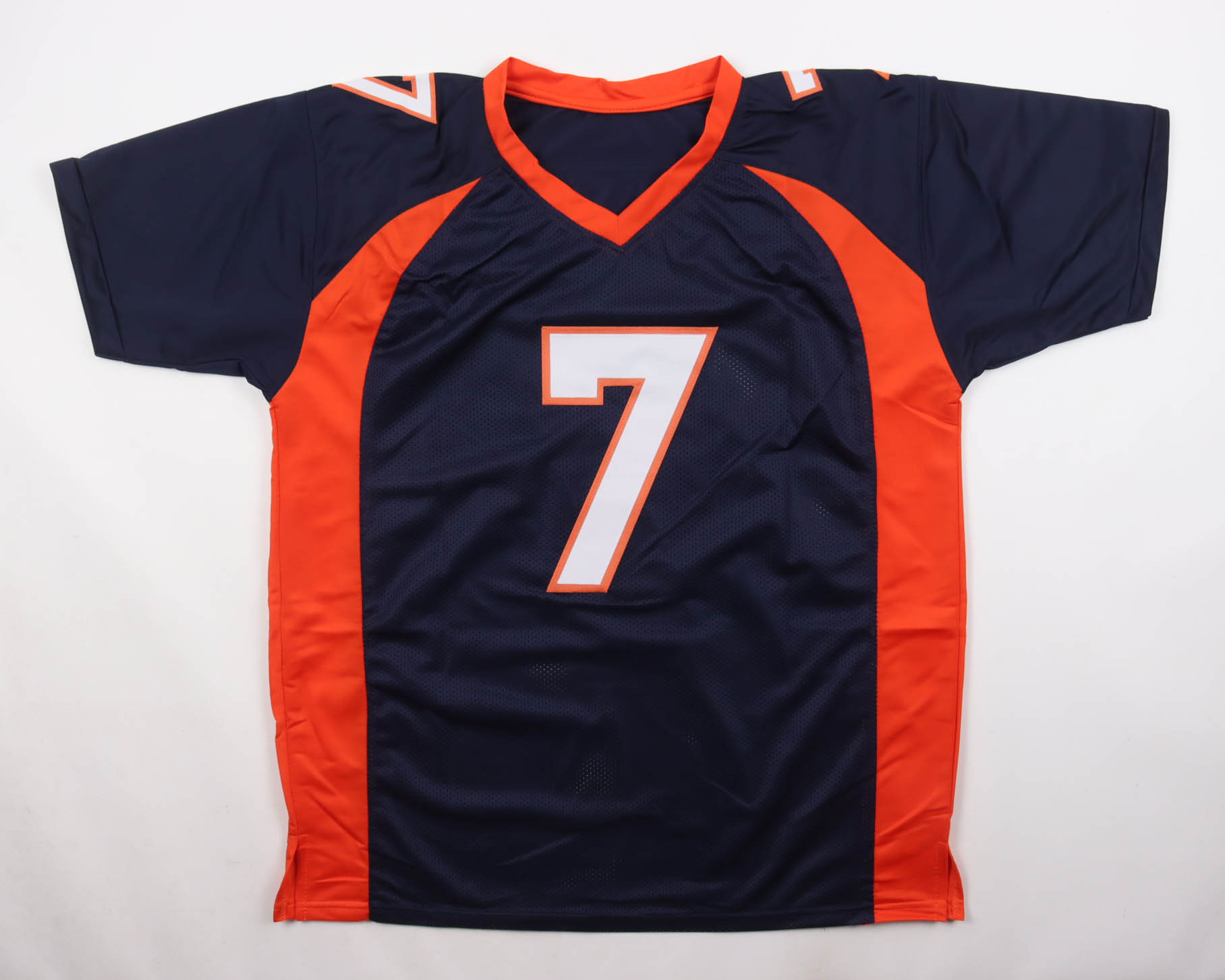 Custom jersey with everything sewn on, size XL. Hand-signed by John Elway (HOF).