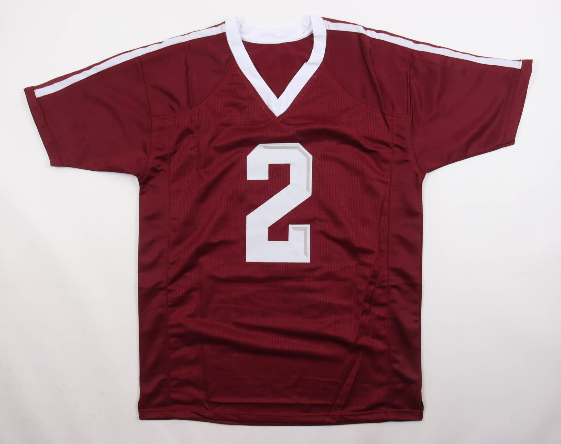 Custom jersey with everything sewn on, size XL. Hand-signed and inscribed by Johnny Manziel.