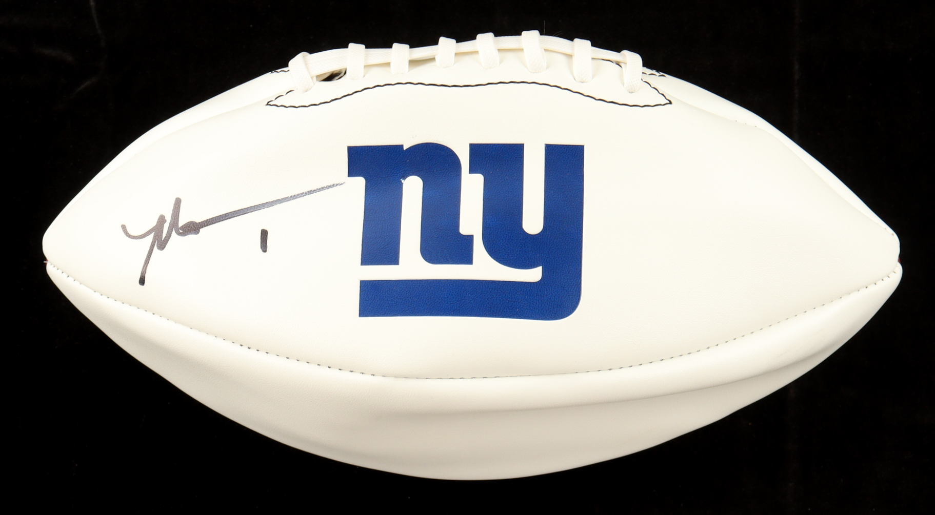 New York Giants logo football. Hand-signed by Malik Nabers.