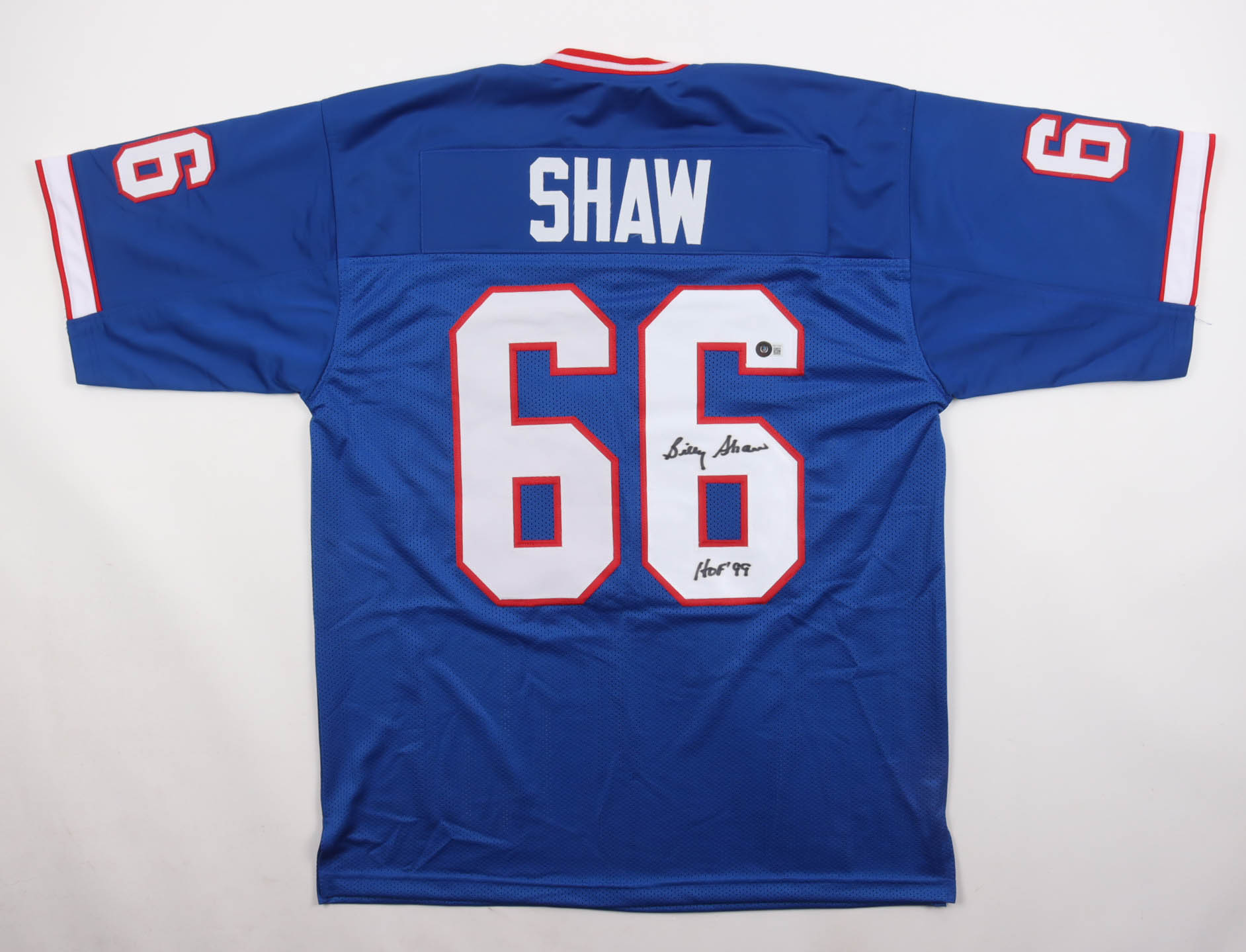 Custom jersey with everything sewn on, size XL. Hand-signed and inscribed by Billy Shaw (Buffalo Bills, HOF).