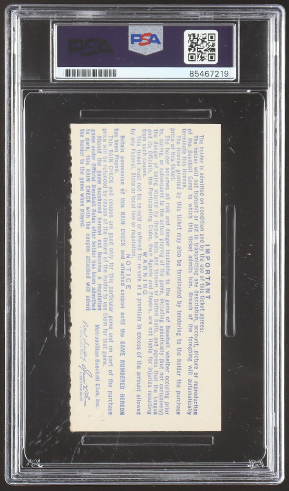 Autograph Graded PSA 10 | Vintage Shea Stadium Game Ticket