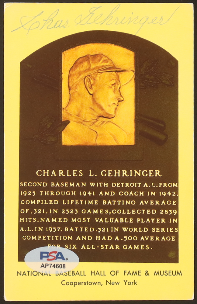 Charlie Gehringer Signed Hall of Fame Plaque Postcard (PSA)