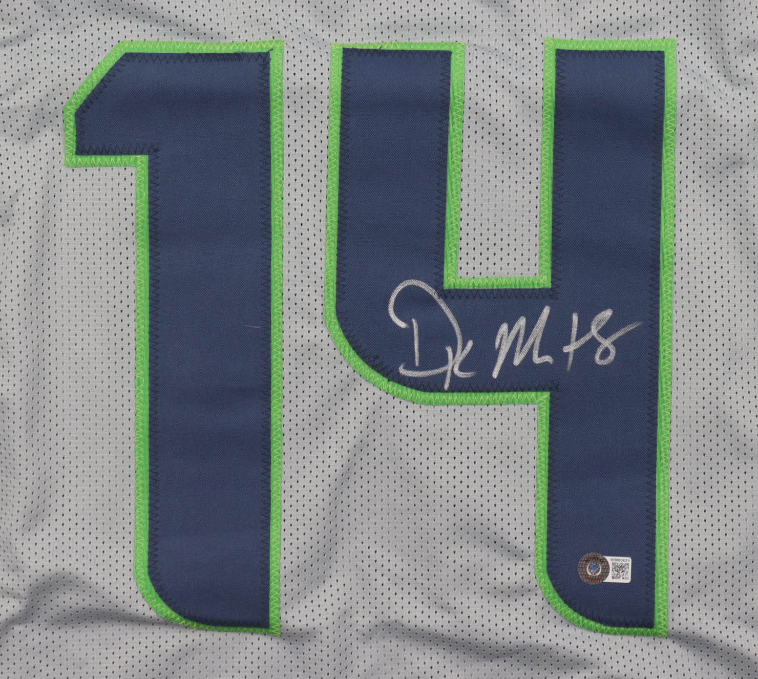 Custom jersey. Everything is sewn on, size XL. Hand-signed by DK Metcalf.