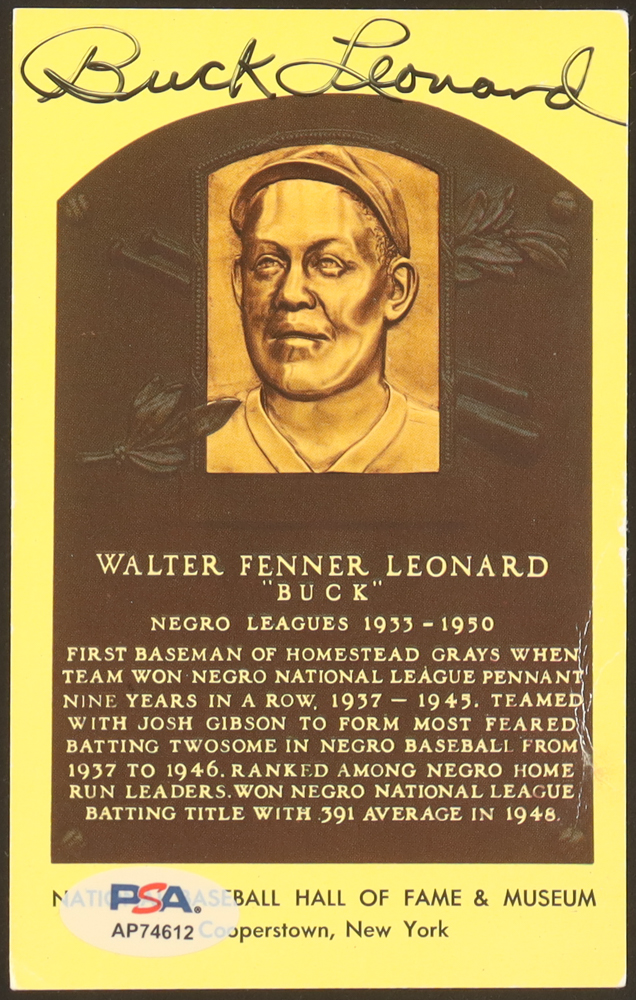 Buck Leonard Signed Hall of Fame Plaque Postcard (PSA)