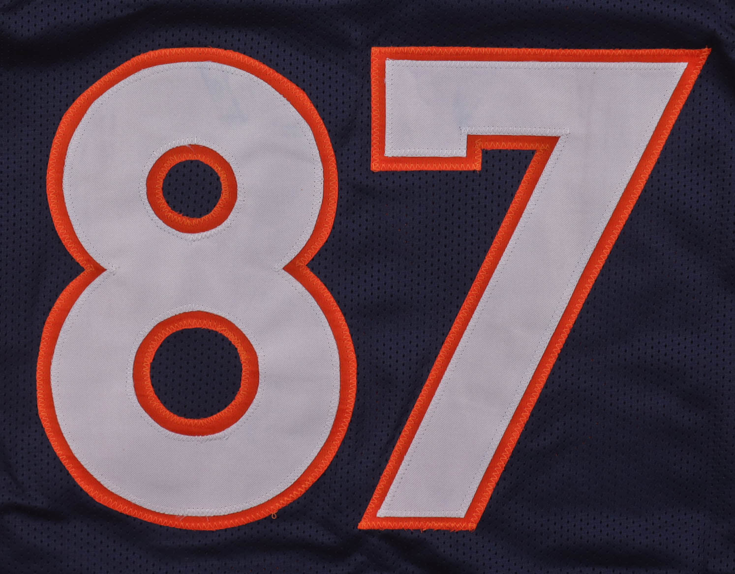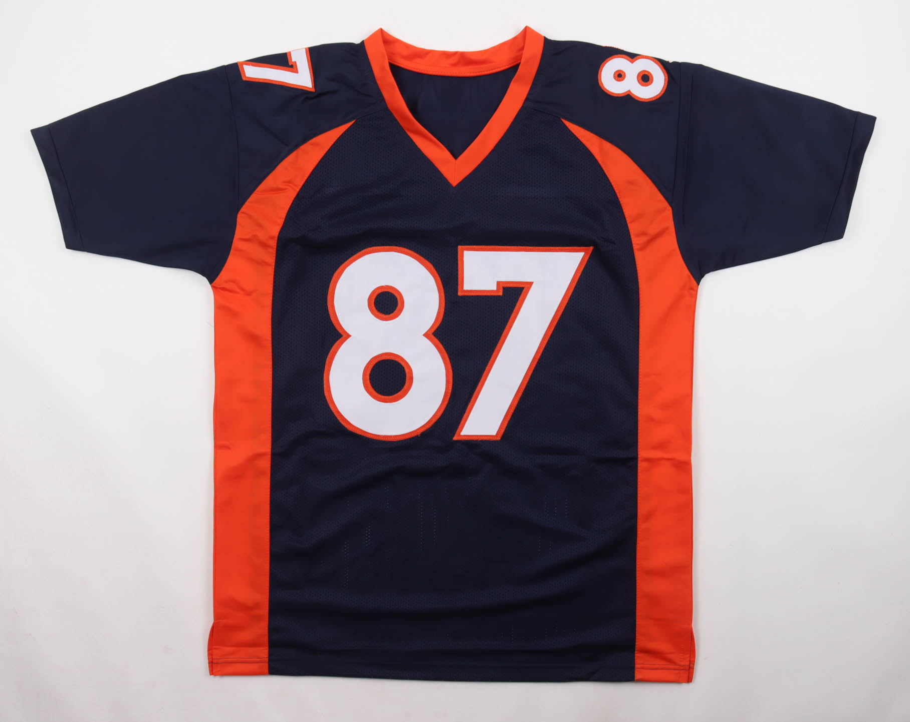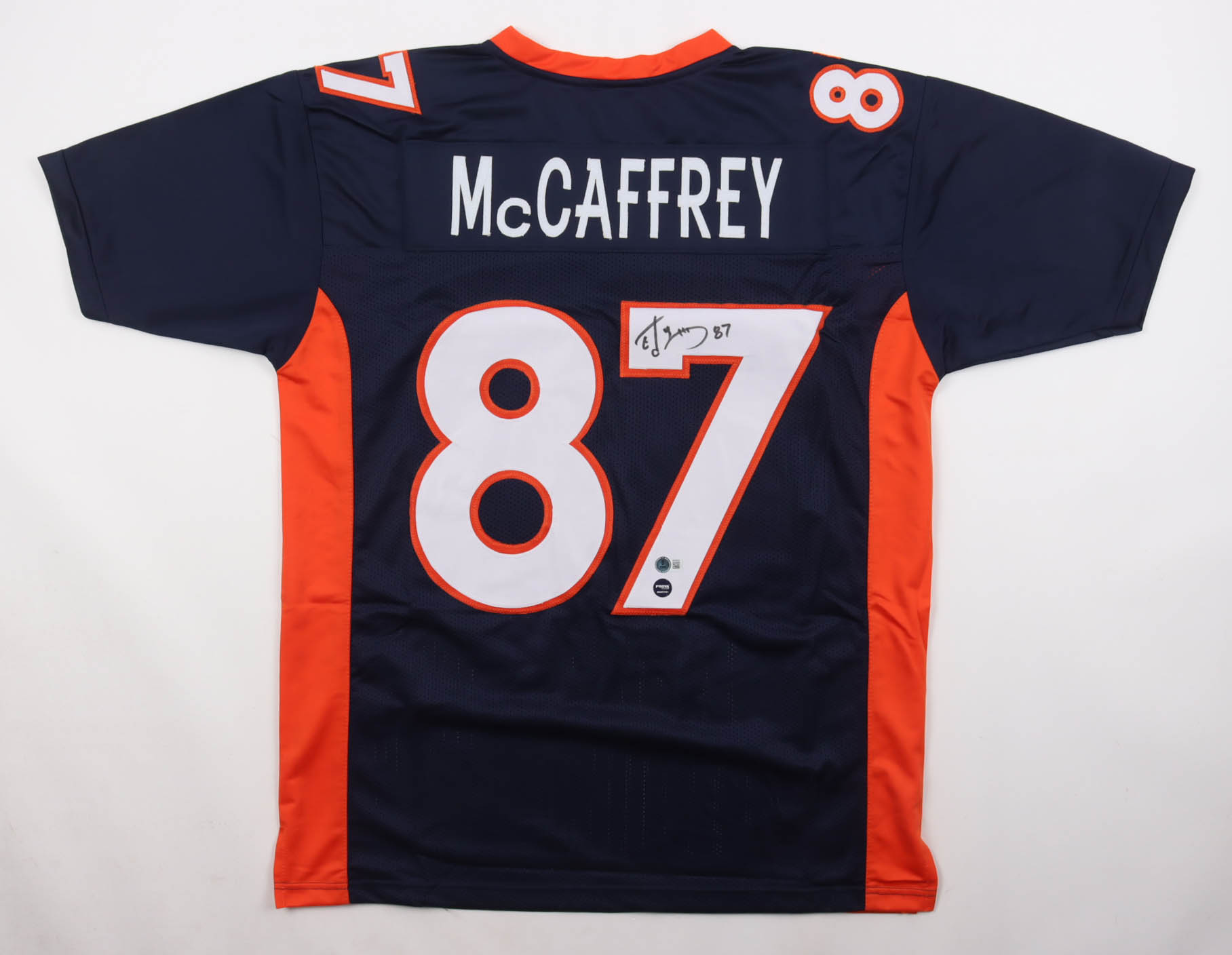 Custom jersey with everything sewn on, size XL. Hand-signed and inscribed by Ed McCaffrey.