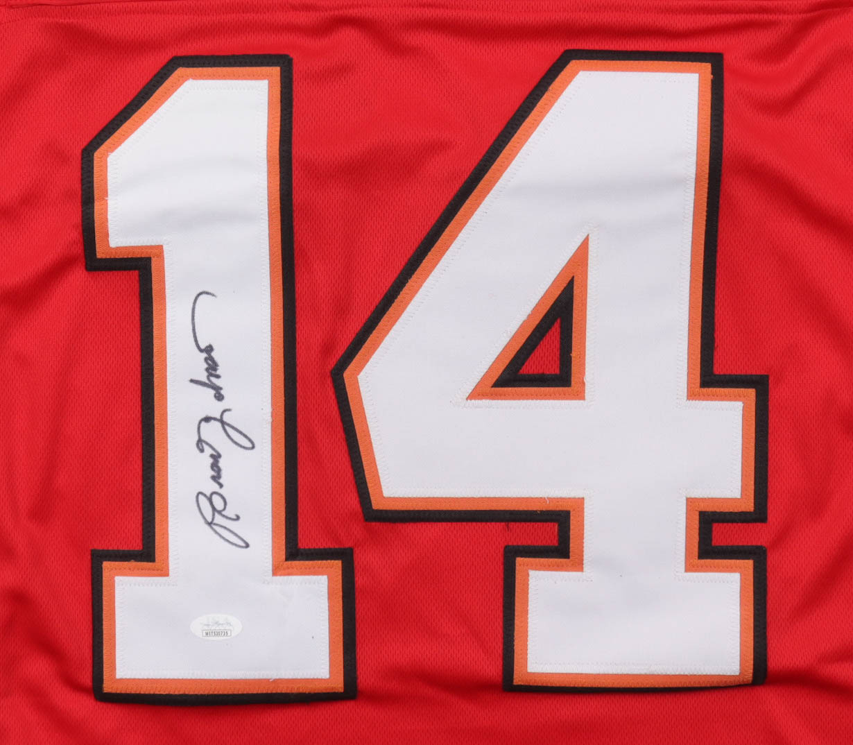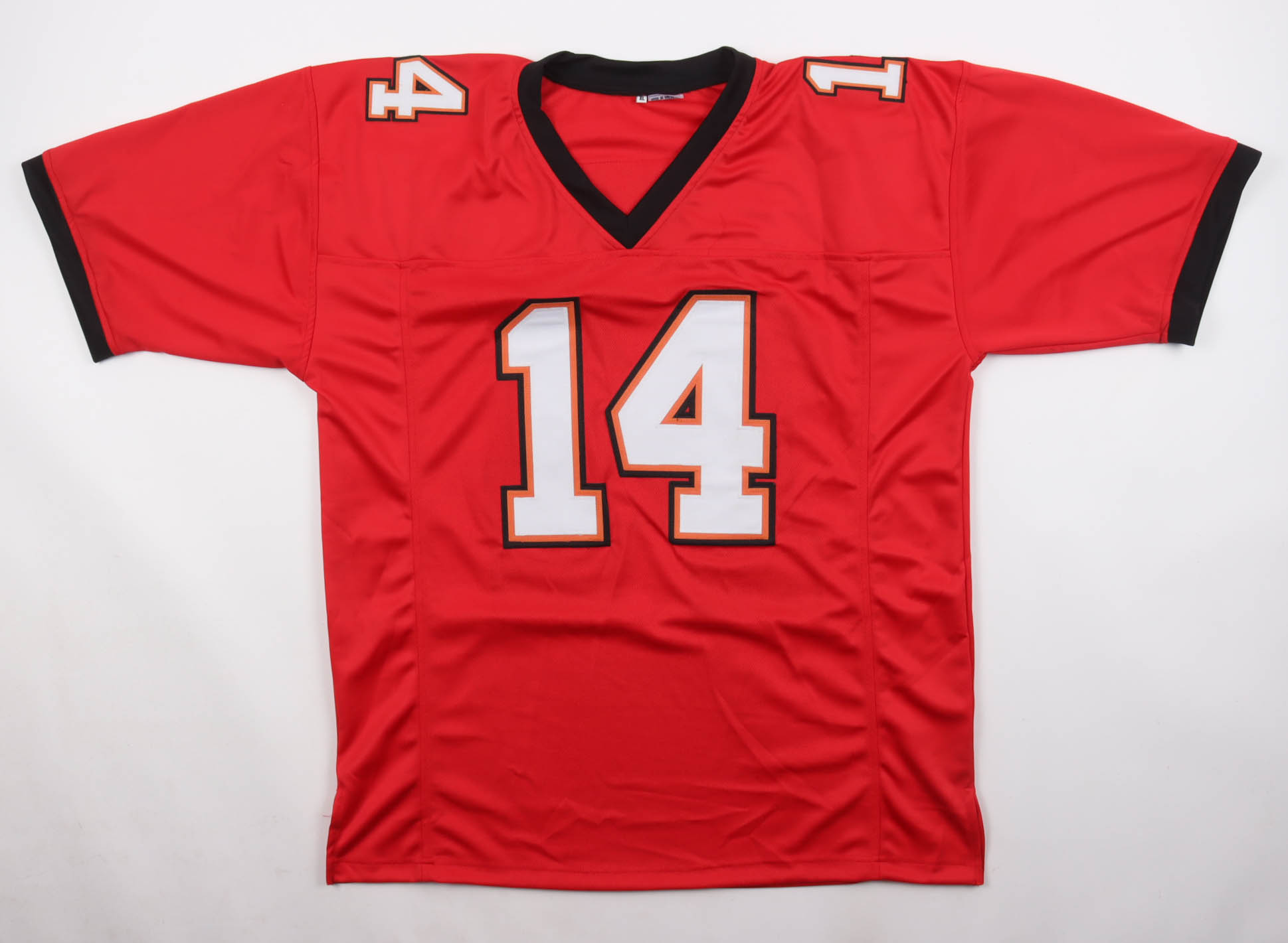 Custom jersey with everything sewn on, size XL. Hand-signed by Brad Johnson (Tampa Bay Buccaneers).