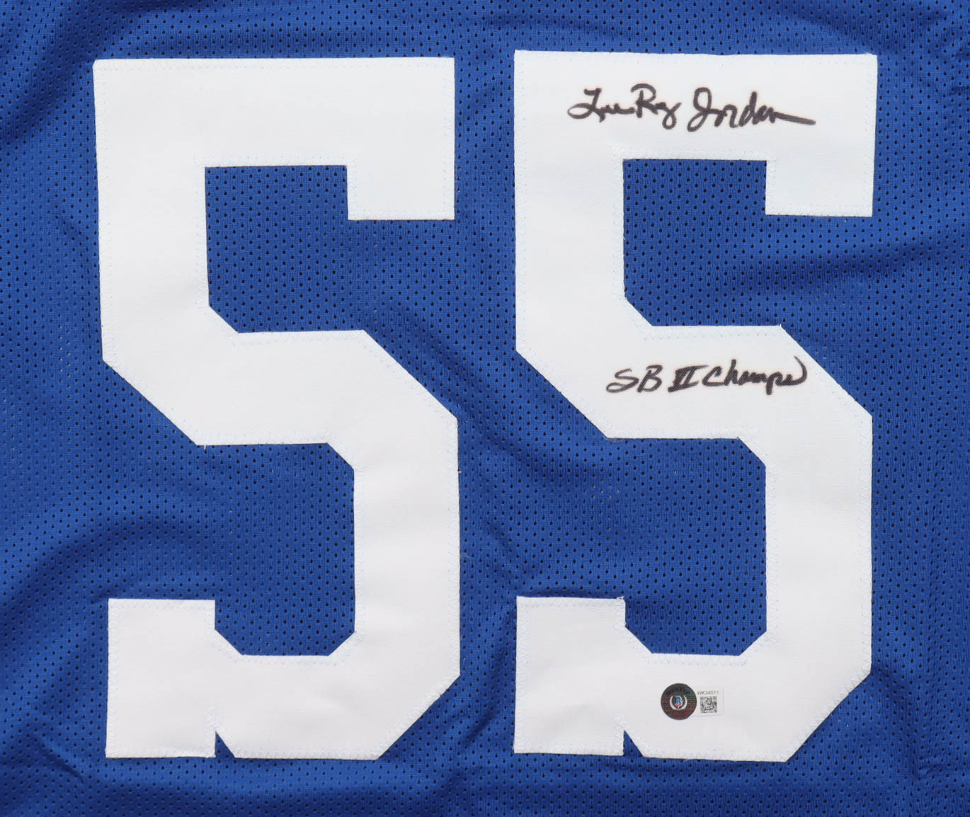 Custom jersey. Everything is sewn on, size XL. Hand-signed and inscribed by Lee Roy Jordan (D. 2025). Please note, glue is visible through the jersey numbers. See photos regarding the condition of the item.