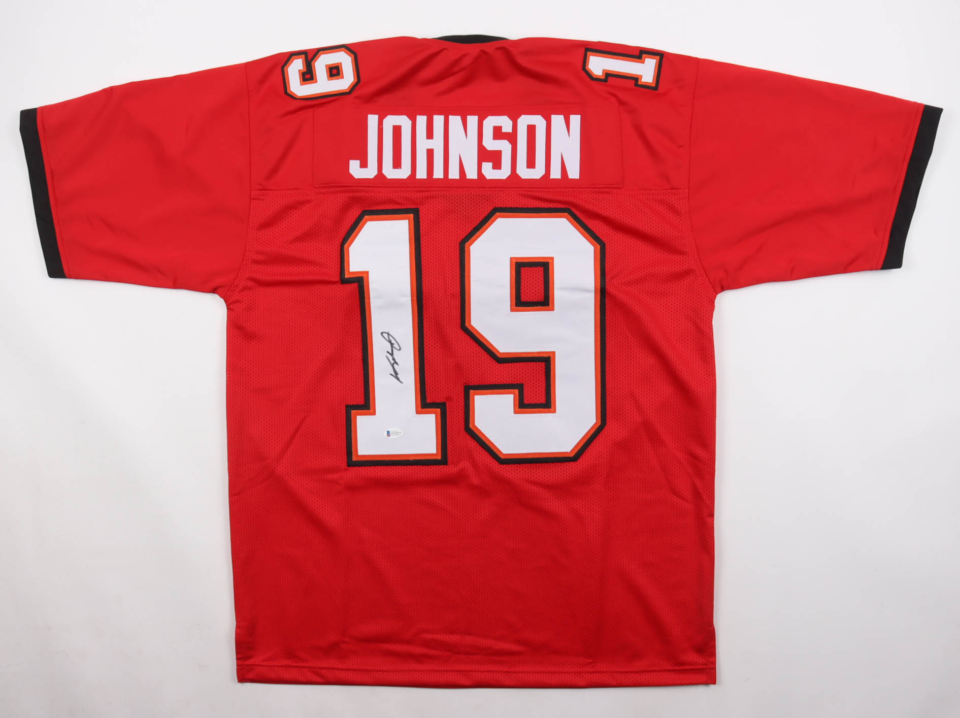 Custom jersey with everything sewn on, size XL. Hand-signed by Keyshawn Johnson (Tampa Bay Buccaneers).