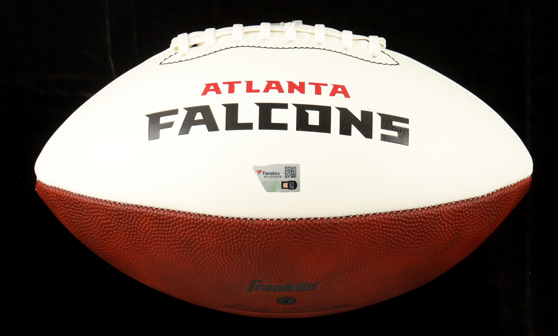 Tetaoira Falcons McMillan logo football. Hand-signed by Tetairoa McMillan.