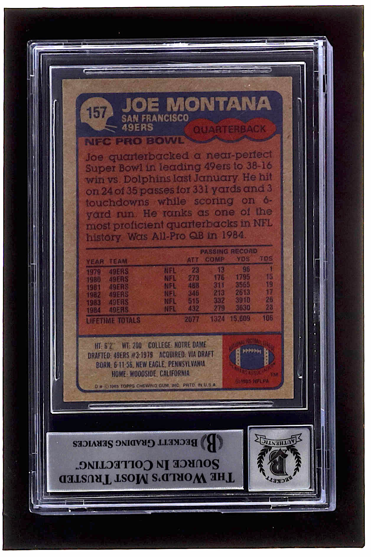 Joe Montana Signed 1985 Topps #157 (BGS | Auto Grade 10)