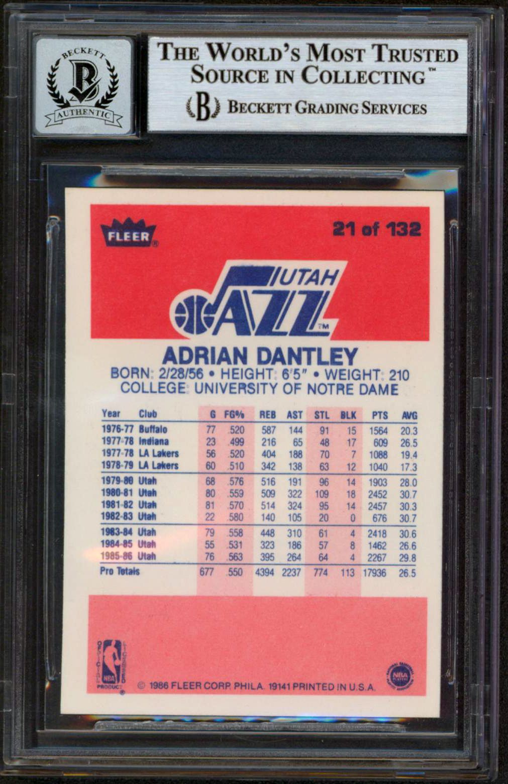Adrian Dantley Signed 1986-87 Fleer #21 Inscribed "HOF 2008" (BGS)