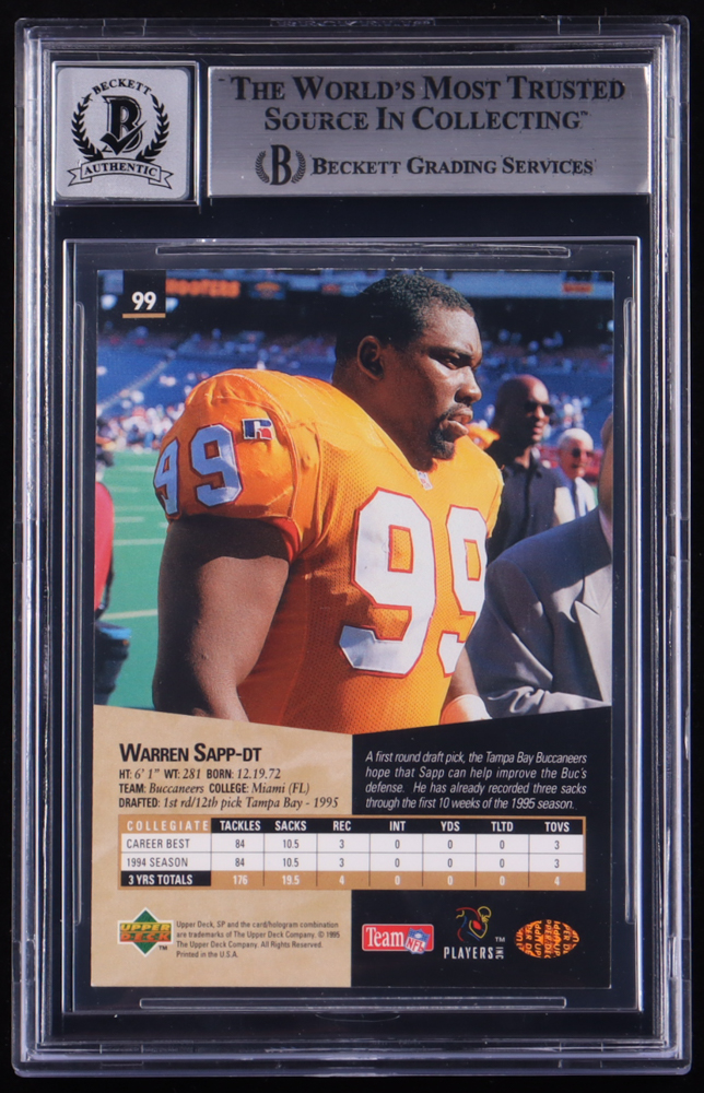 Warren Sapp Signed 1995 SP #99 RC Inscribed "HOF 13" (BGS | Auto 10)