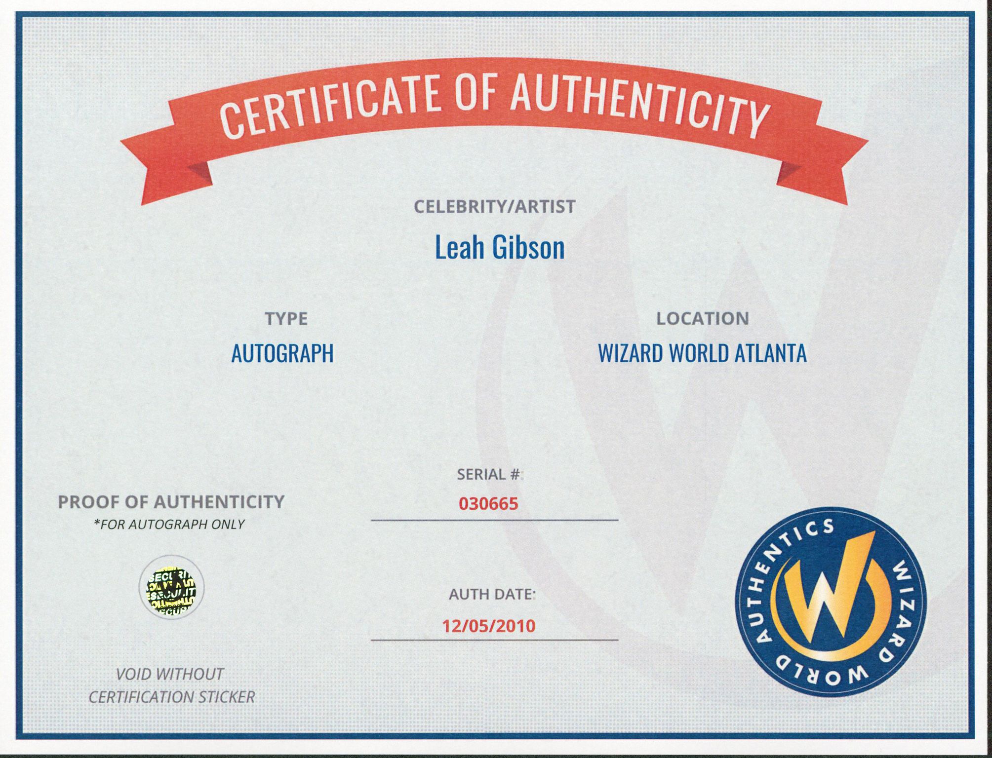 Authentication: Wizard World COA
