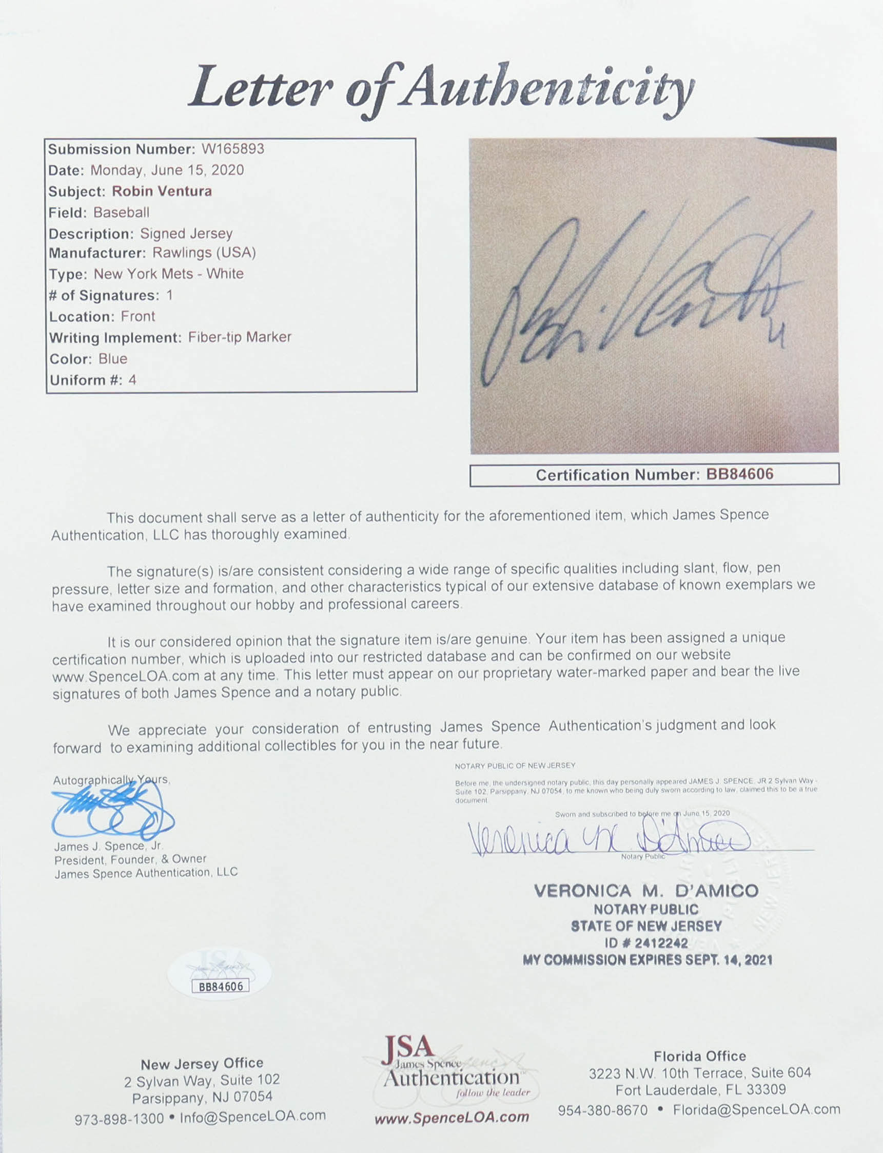 Custom jersey with everything sewn on, size XL. Hand-signed by Robin Ventura.