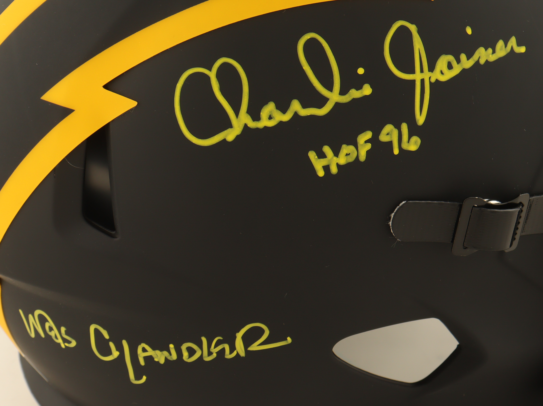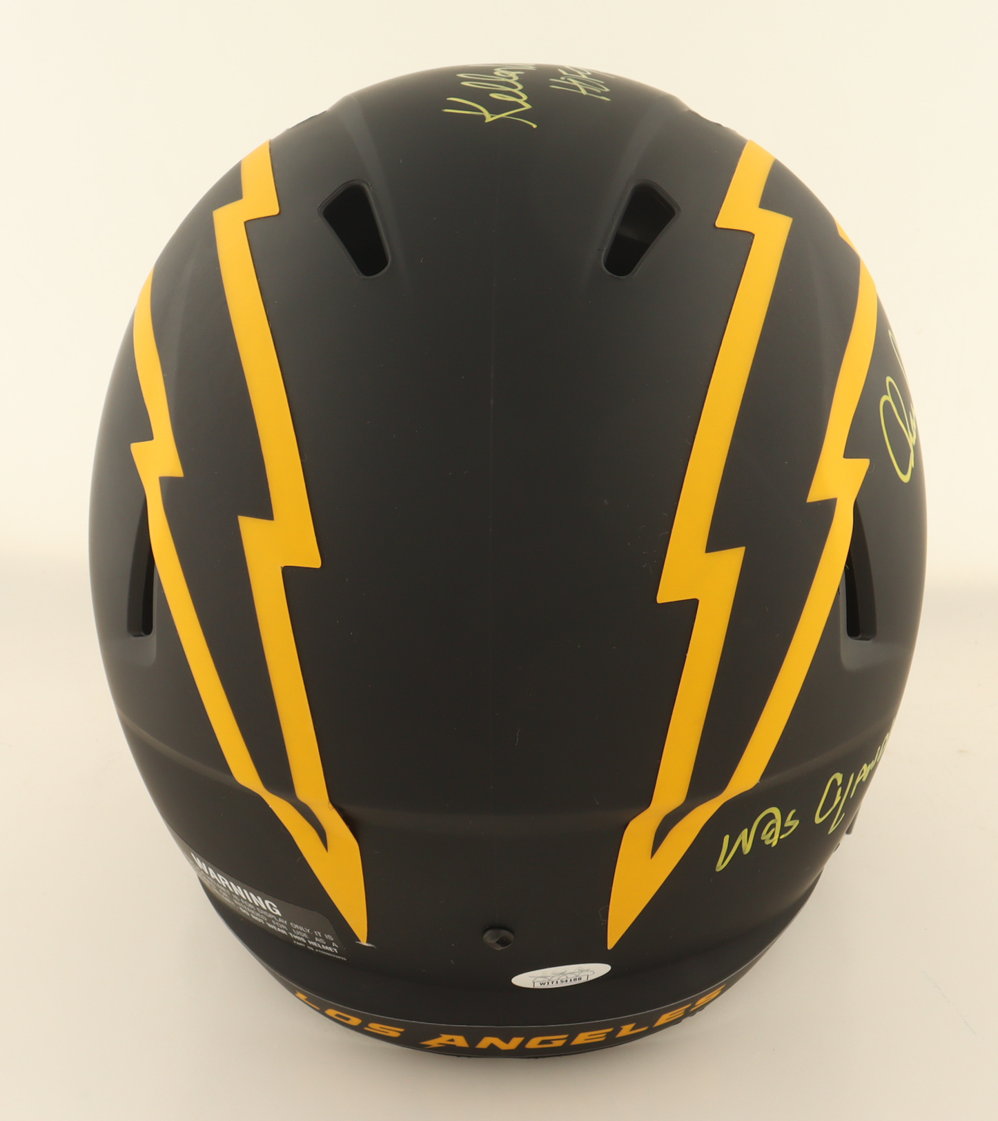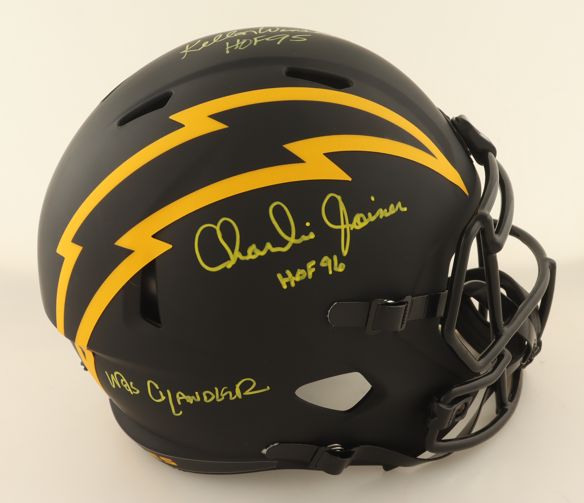 Riddell San Diego Chargers Full-Size Eclipse Alternate Speed Replica Helmet. Hand-signed and inscribed by Wes Chandler, Kellen Winslow (HOF), and Charlie Joiner (HOF).