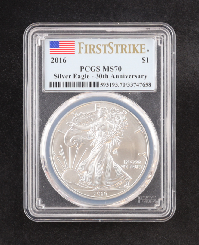 2016 American $1 Dollar Silver Eagle, First Strike - Silver Eagle 30th Anniversary (PCGS MS70)