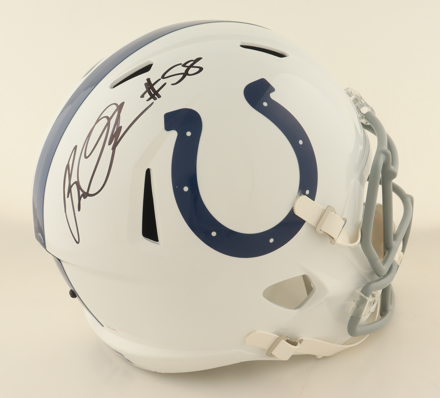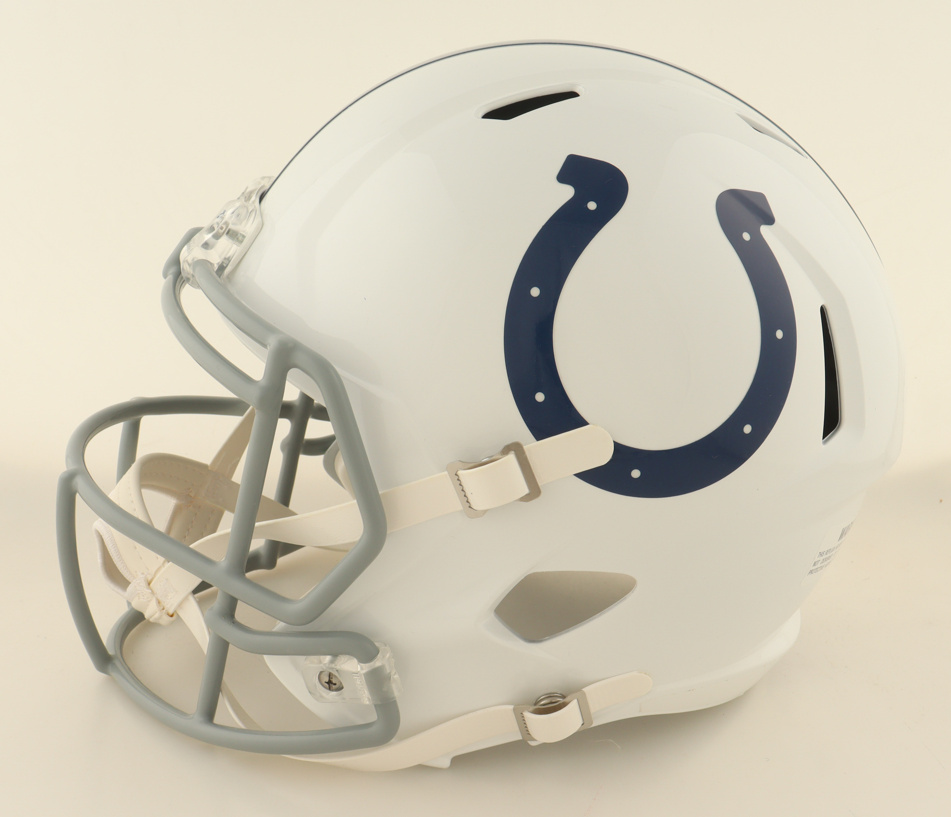 Riddell Indianapolis Colts Full-Size Speed Replica Helmet. Hand-signed by Bobby Okereke.