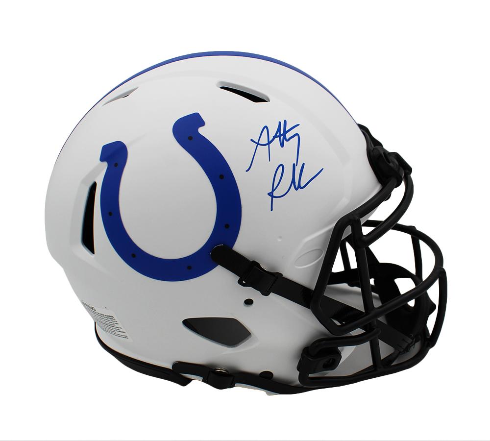 Riddell Indianapolis Colts Full-Size Authentic On-Field Lunar Eclipse Alternate Speed Helmet has been hand-signed by Anthony Richardson.