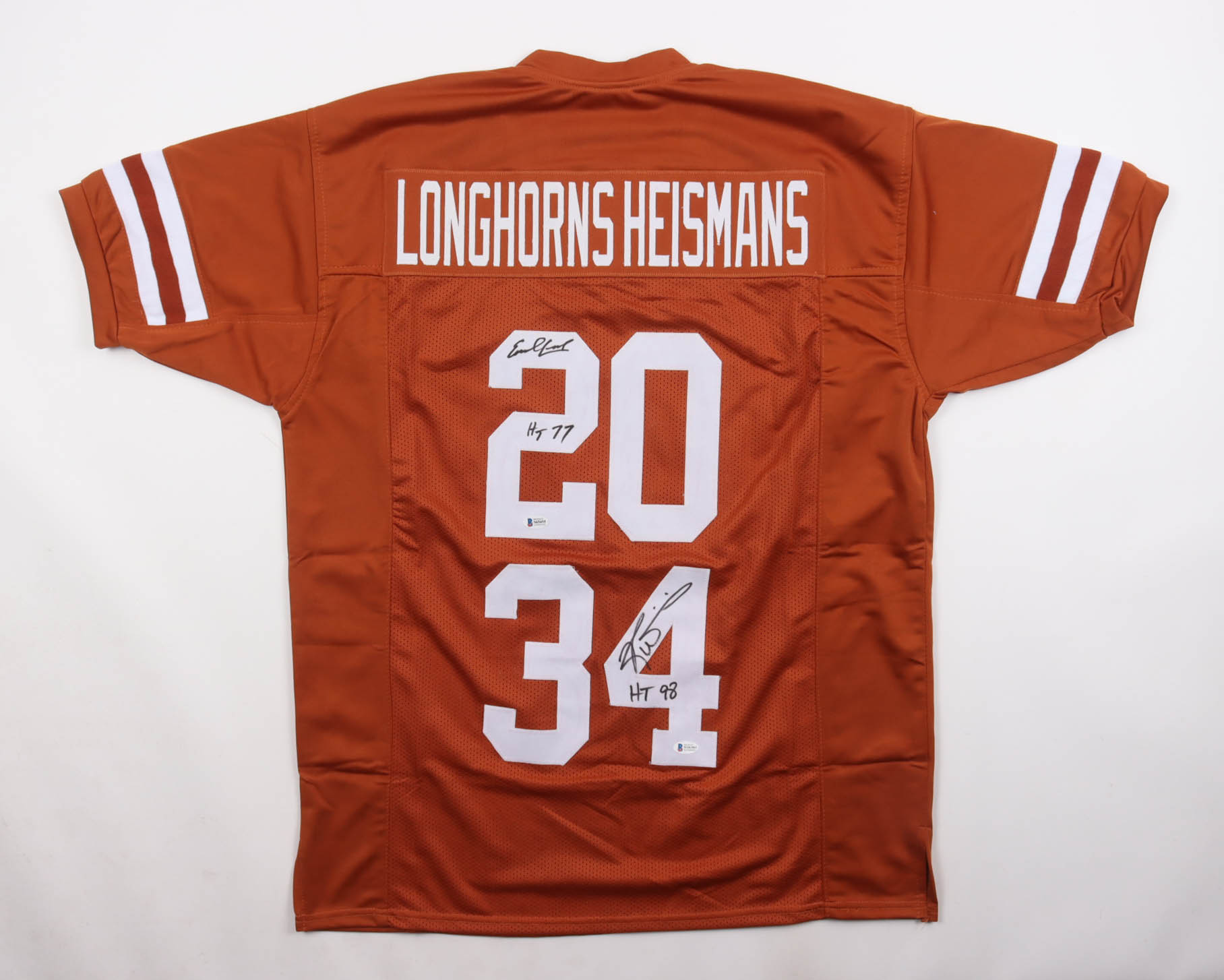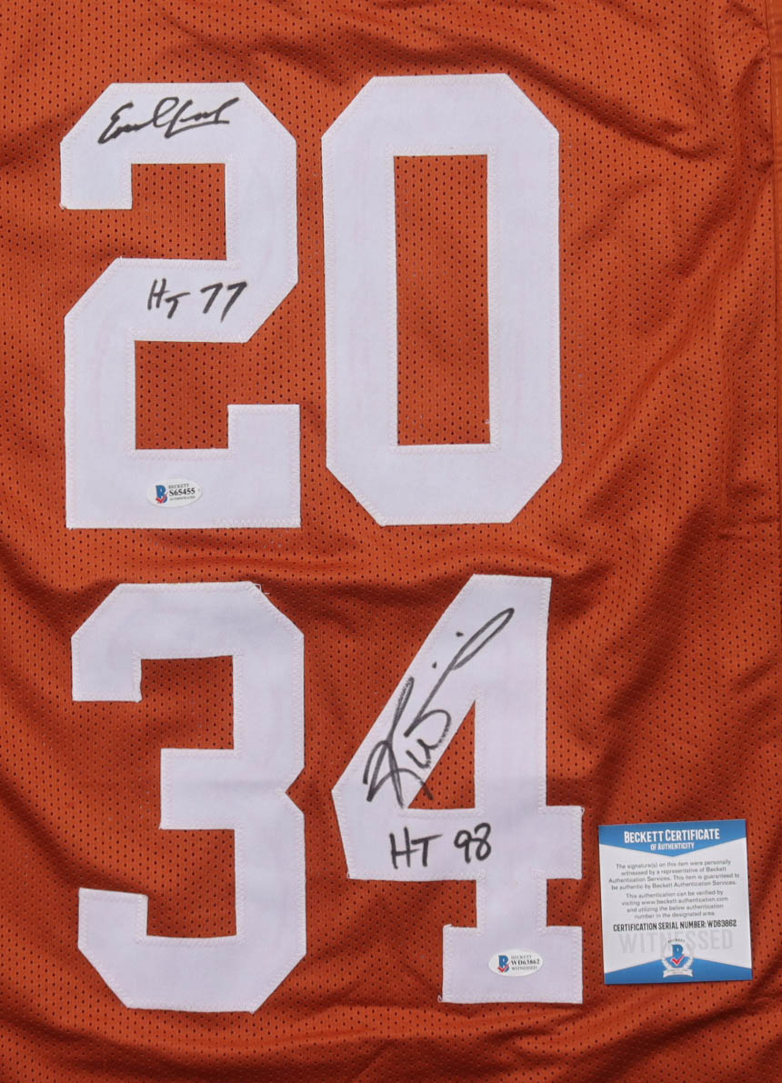 Ricky Williams & Earl Campbell Signed Jersey Inscribed "HT 98" & "HT 77" (Beckett)