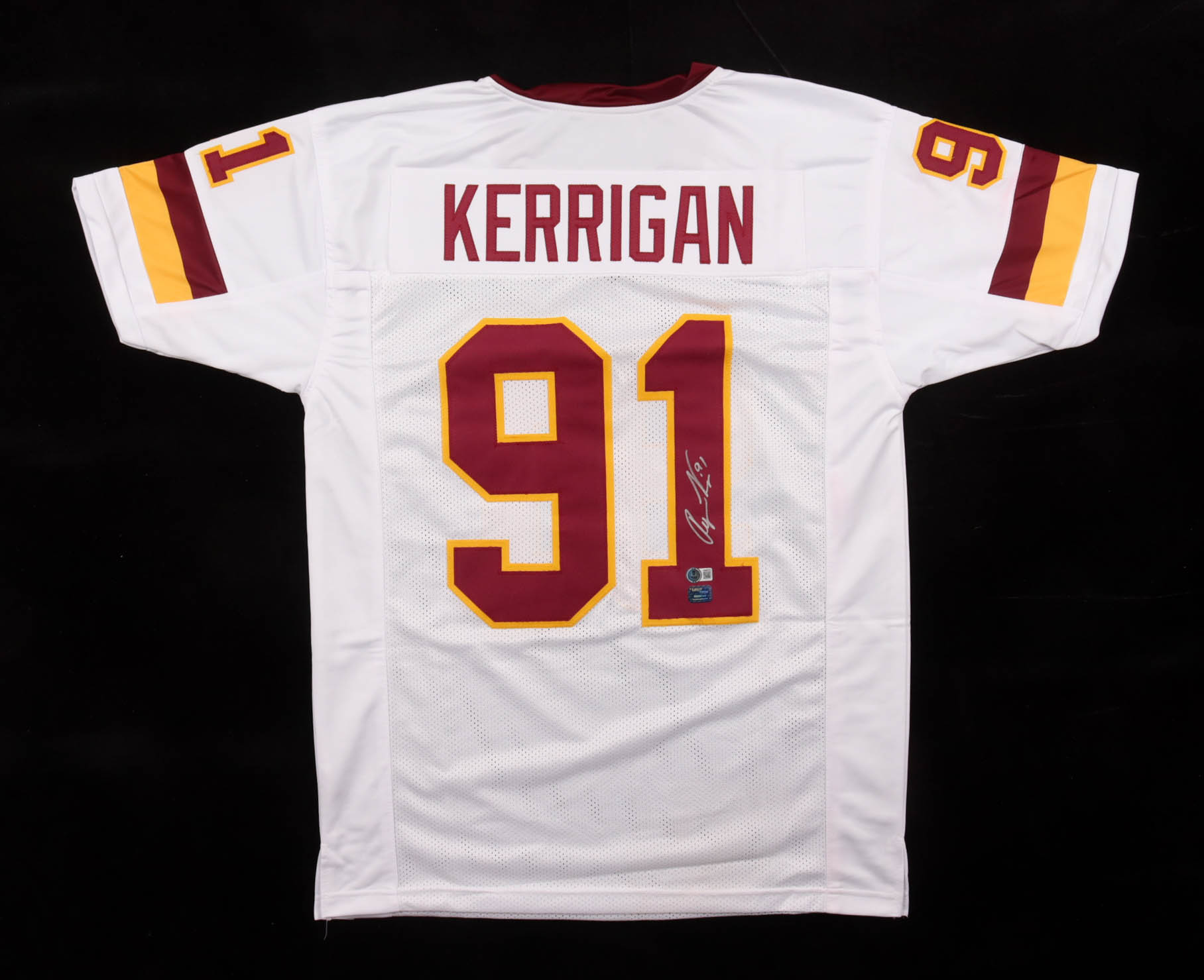 Custom jersey with everything sewn on, size XL. Hand-signed by Ryan Kerrigan. Please note, there is red staining throughout the jersey. See photos regarding the condition of the item.
