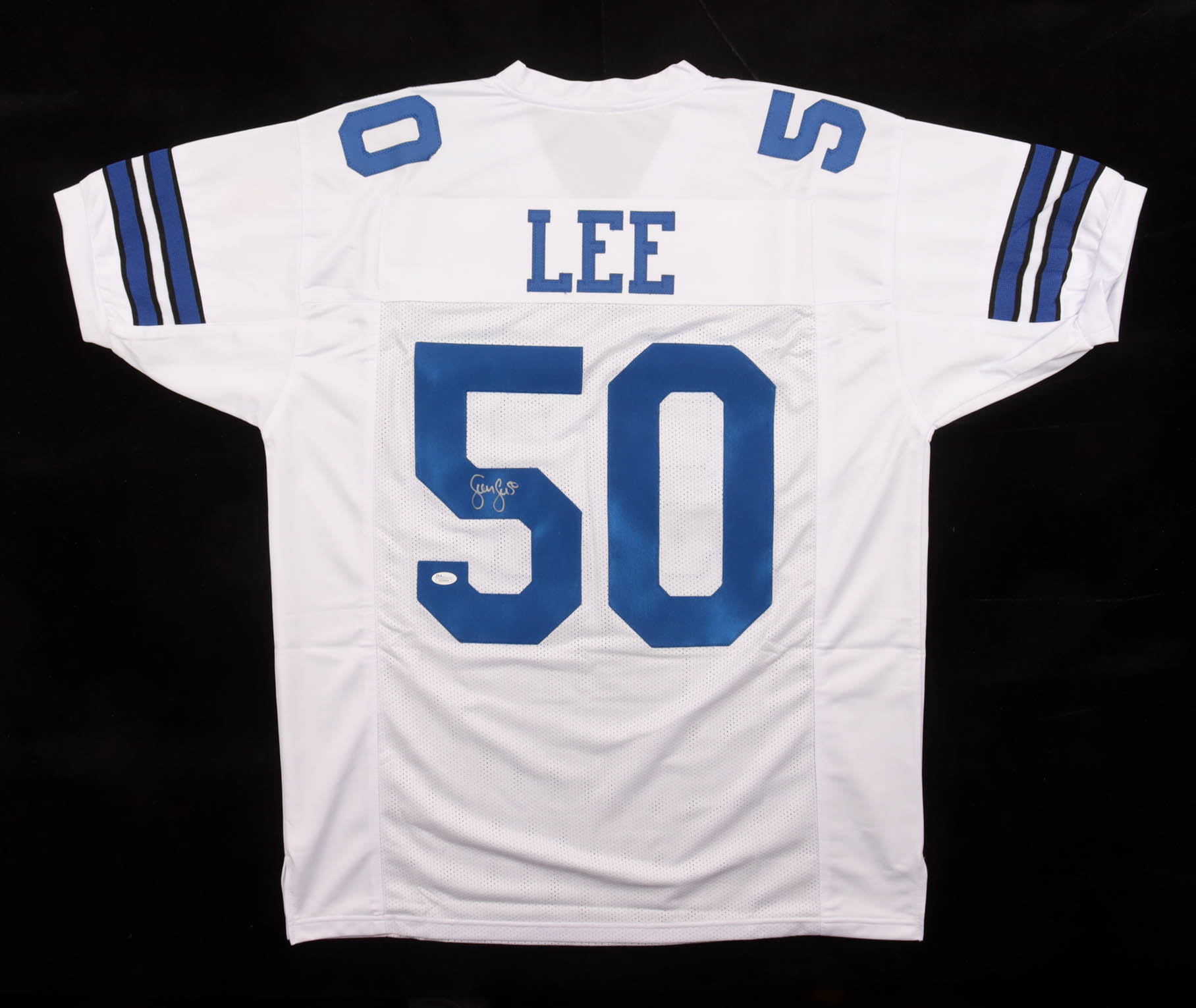 Custom jersey with everything sewn on, size L. Hand-signed by Sean Lee.