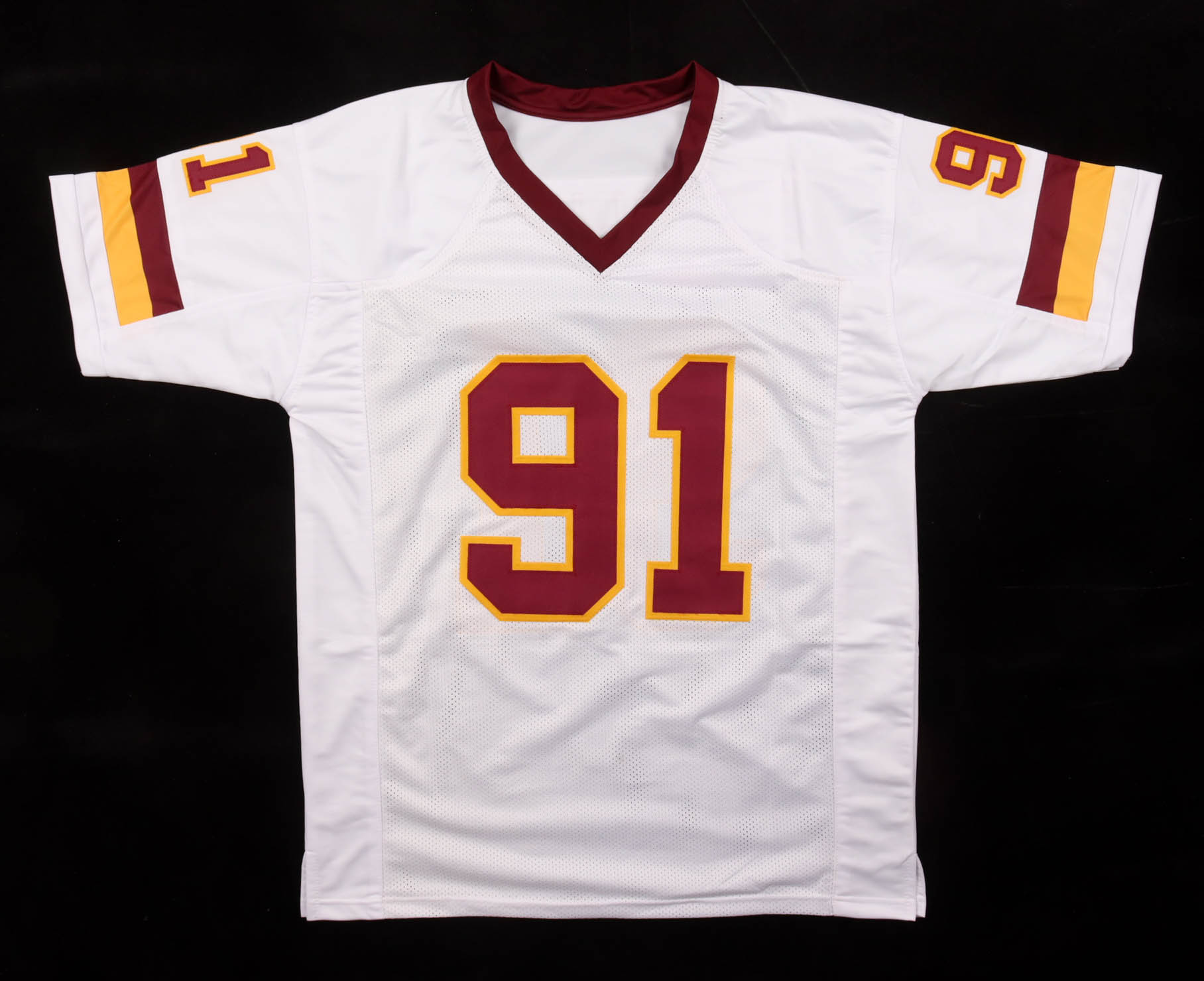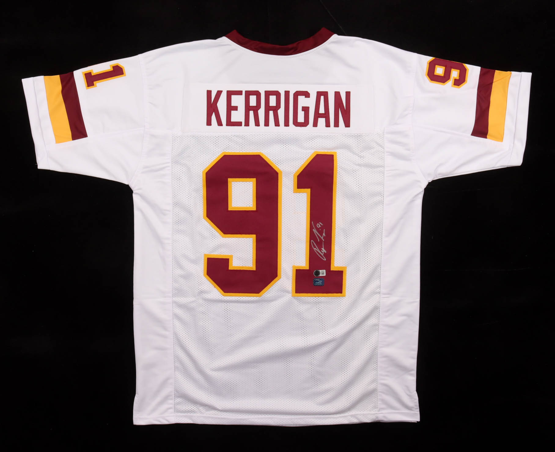 Custom jersey with everything sewn on, size XL. Hand-signed by Ryan Kerrigan. Please note, there is red staining on the sleeves. See photos regarding the condition of the item.