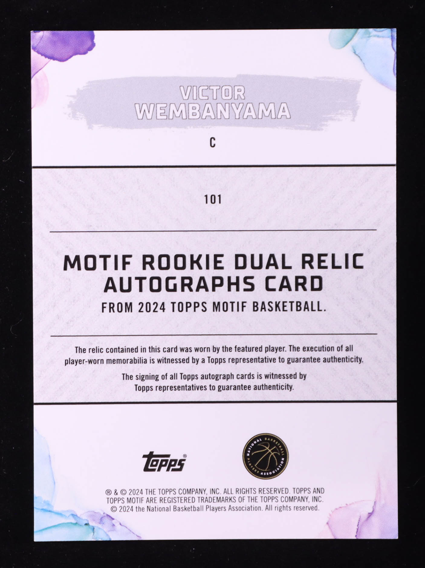 Victor Wembanyama 2023-24 Topps Motif Rookie Dual Relic Autographs Ultramarine Blue #101 RC #22/35