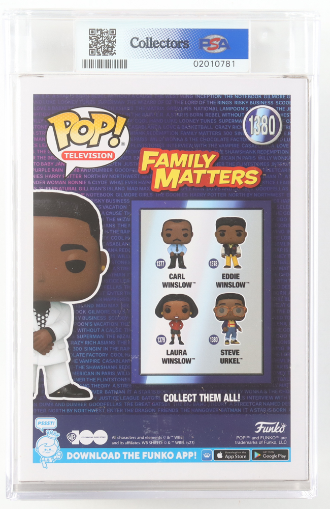 Jaleel White Signed "WB 100" #1380 Steve Urkel Funko Pop! Vinyl Figure Inscribed "Be Smooth" & "Steve Urkel" (PSA 9)