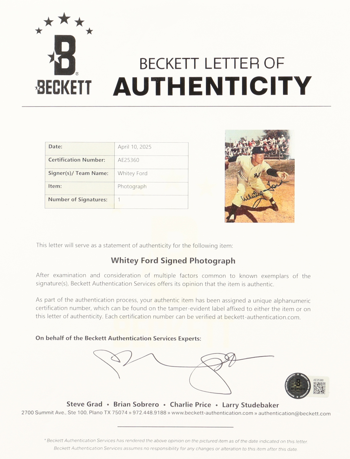 Custom display measures approximately 10.5" x 13" in size and features a photo signed by Whitey Ford (D. 2020, New York Yankees, HOF).