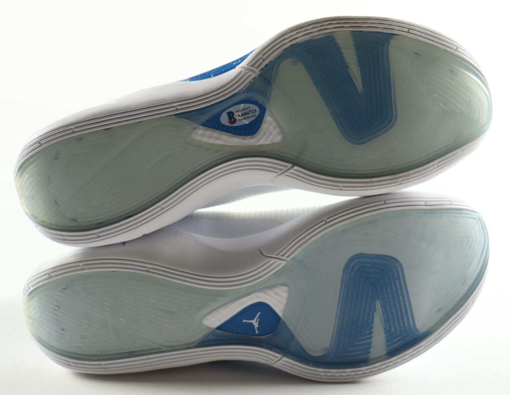 Pair of Jordan Basketball Shoes, size (11). The right shoe has been hand-signed by Luka Doncic (Dallas Mavericks).