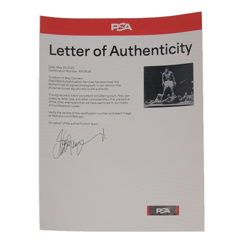 Photo measures 16" x 20" in size and has been hand-signed by Muhammad Ali (D. 2016, HOF).