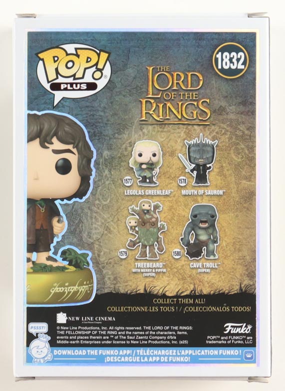 Vinyl figure measures approximately 4" tall. The packaging has been hand-signed and inscribed by Elijah Wood (Frodo Baggins).