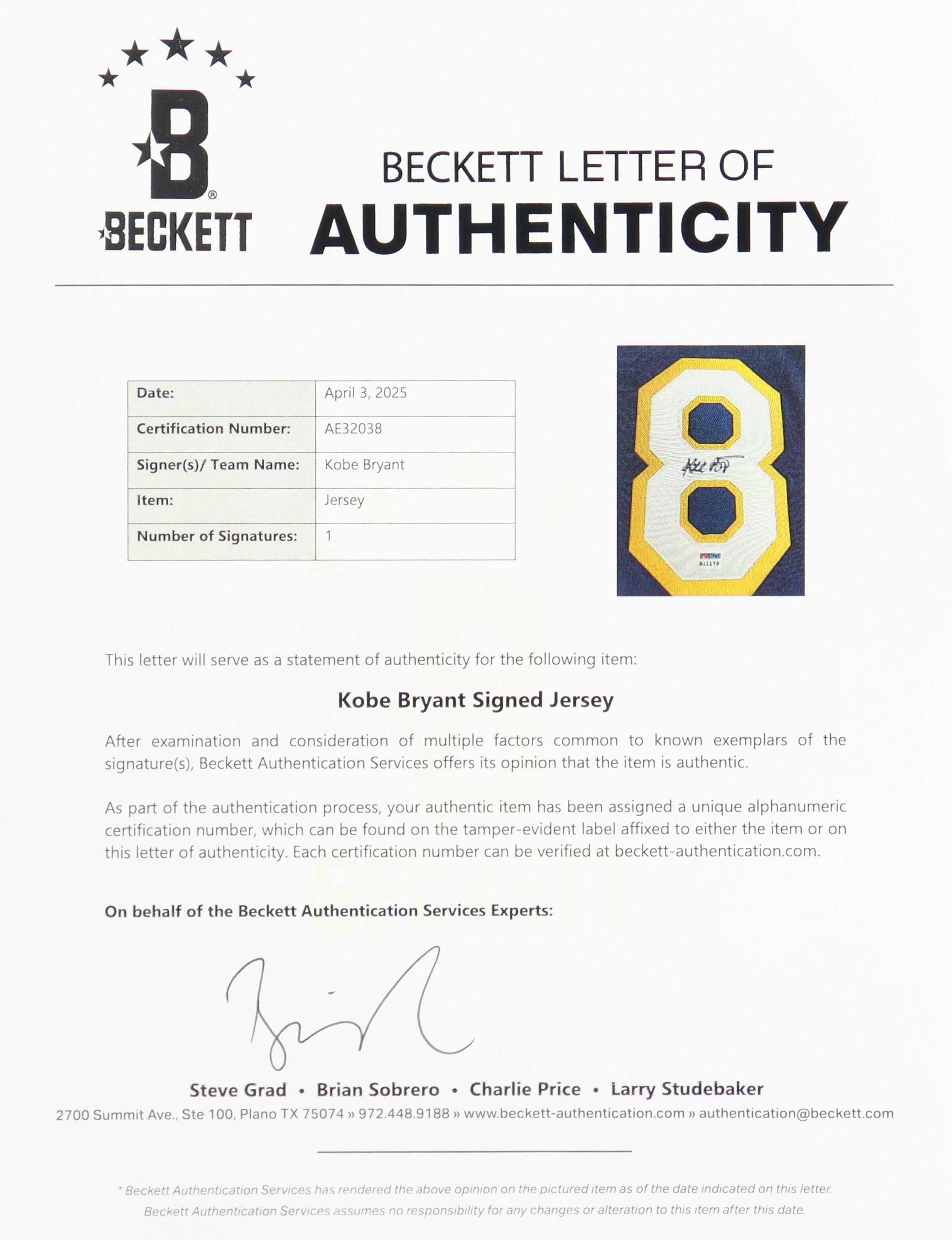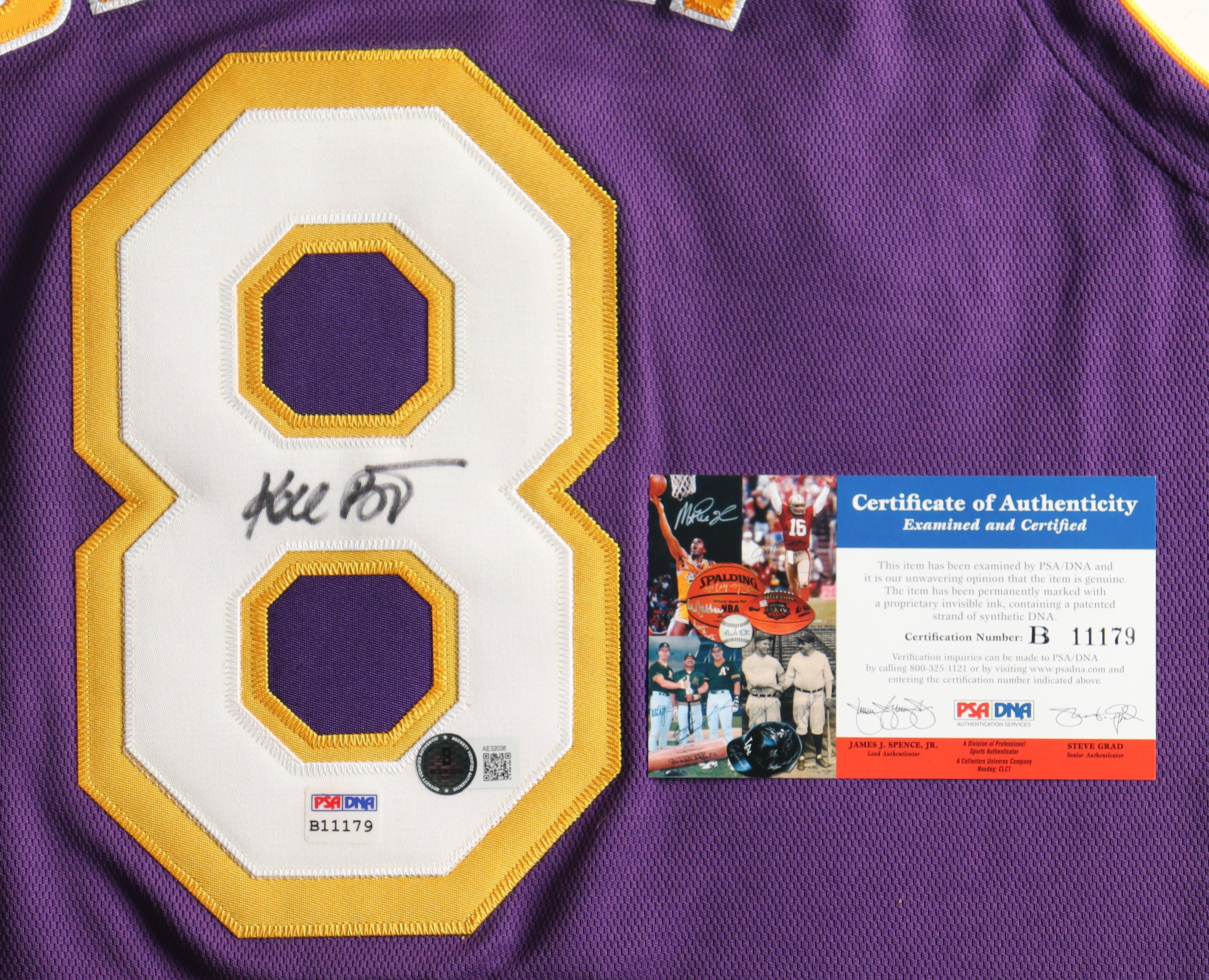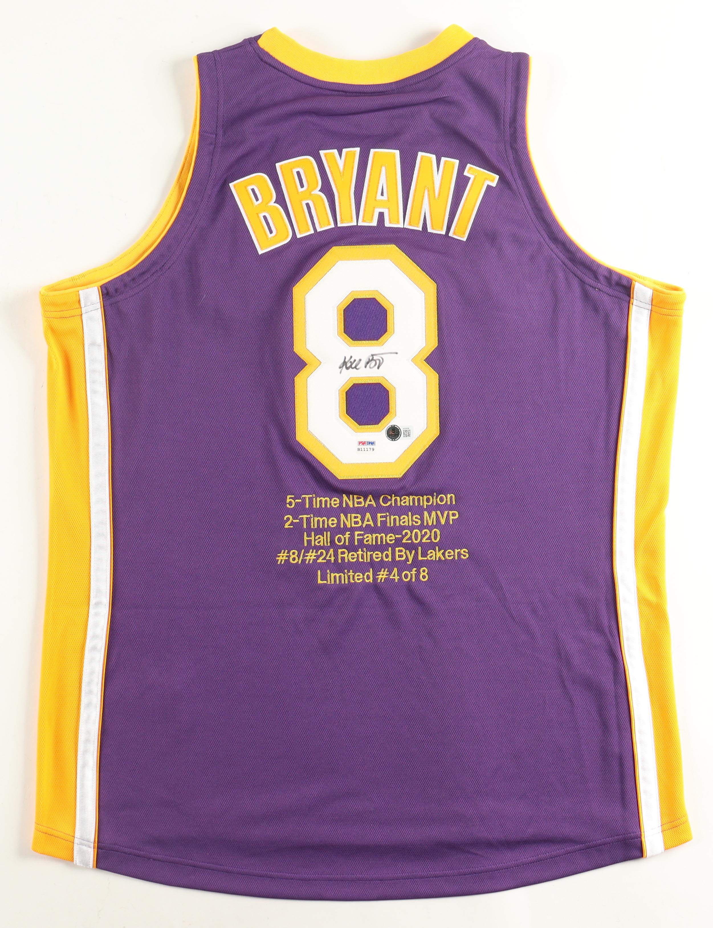Mitchell & Ness style jersey with everything sewn on, size XL. Hand-signed on the back number by Los Angeles Lakers icon, Kobe Bryant!