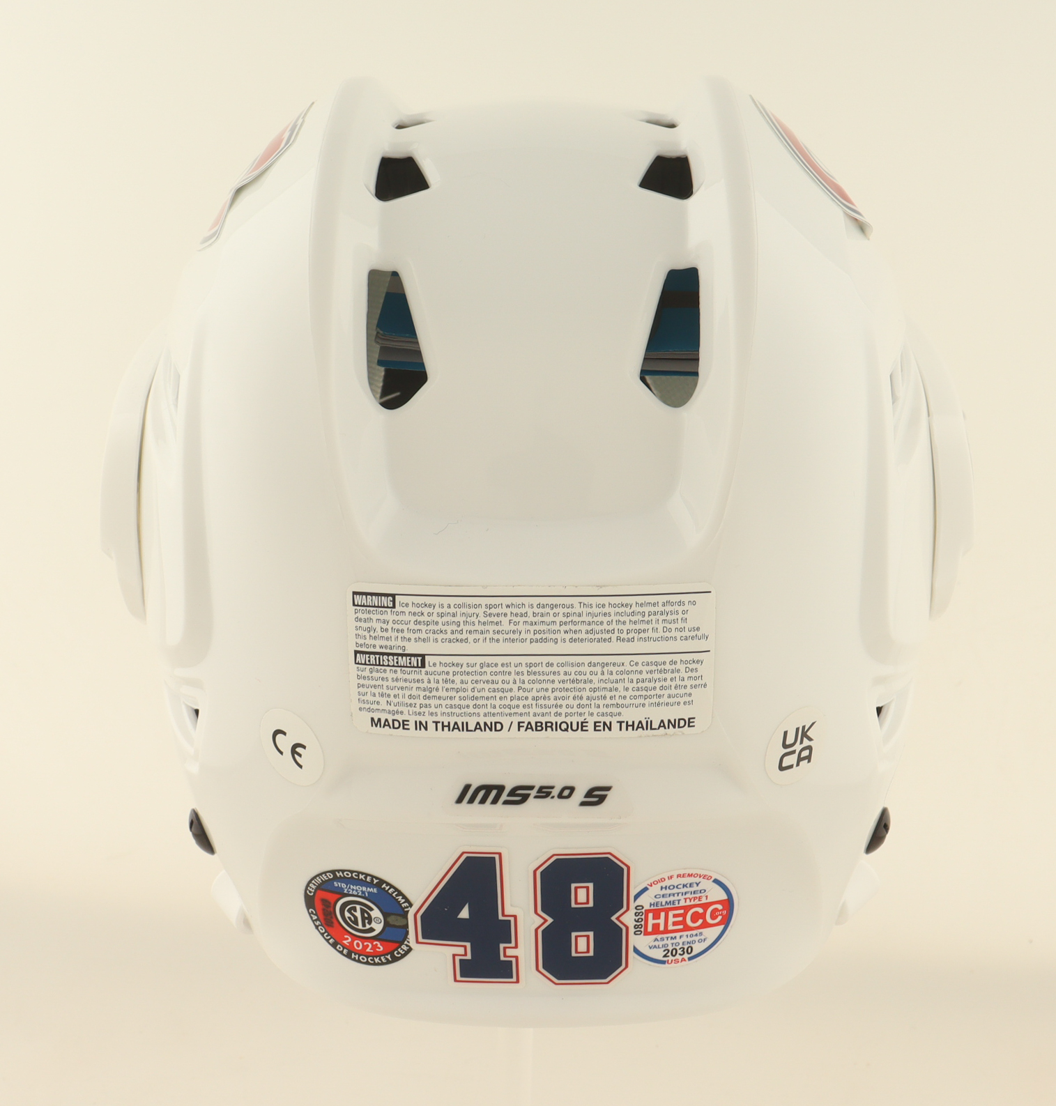 Bauer Montreal Canadiens Full-Size Hockey Helmet. Hand-signed by Lane Hutson.