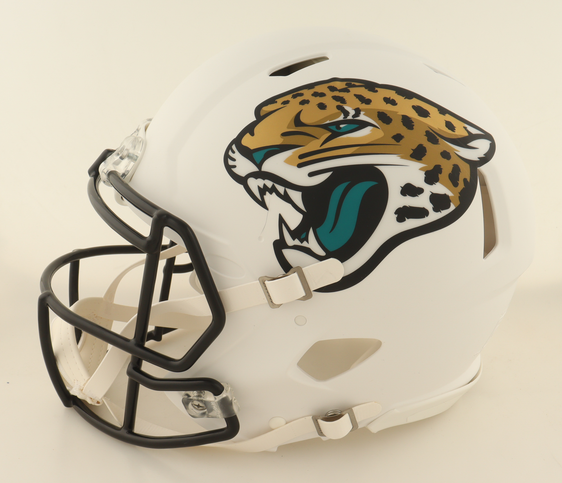 Riddell Jacksonville Jaguars Full-Size Authentic On-Field Speed Helmet. Hand-signed by Trevor Lawrence.