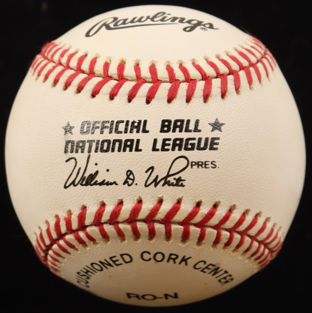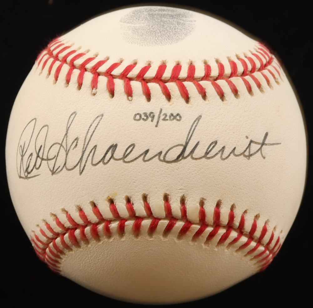 Rawlings Official National League Baseball has been hand-signed by Red Schoendienst (D. 2018, St. Louis Cardinals, HOF). Display case is included as shown. The baseball is Limited Edition and hand-numbered #39/200. Please note, the baseball is naturally toned.