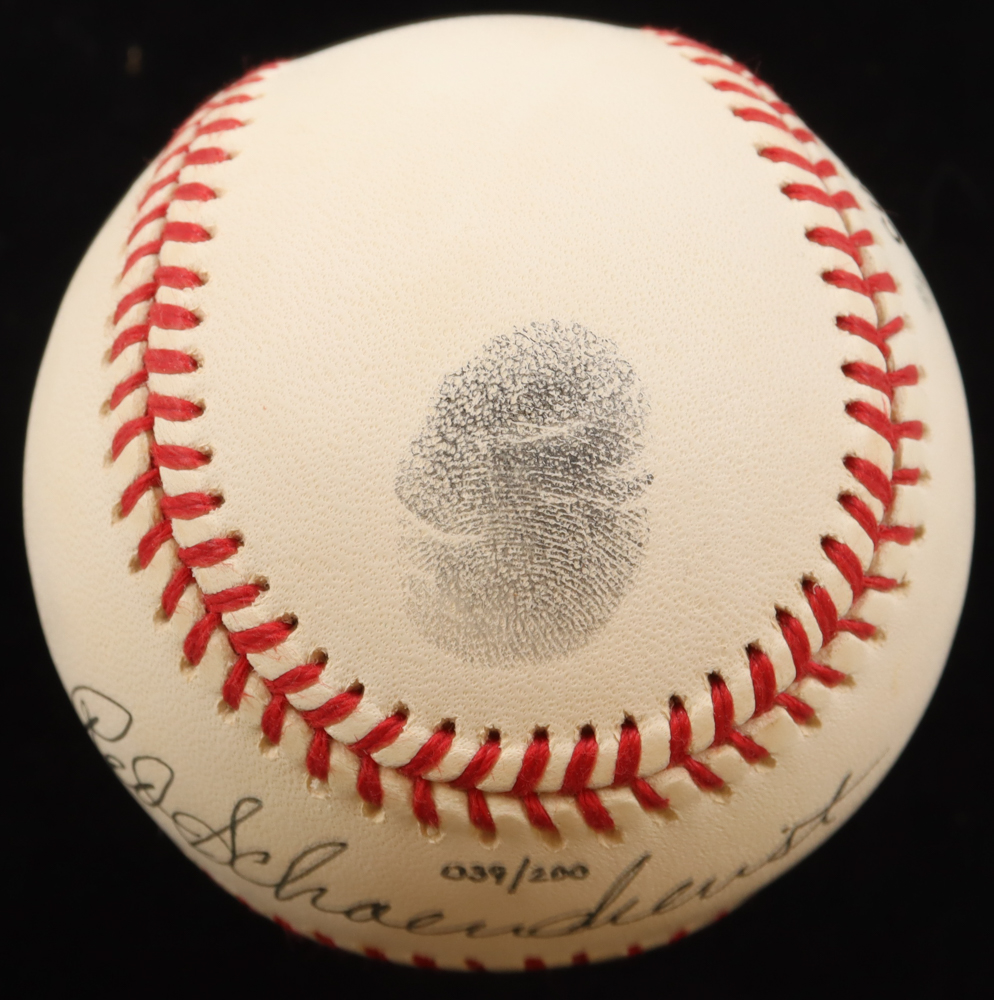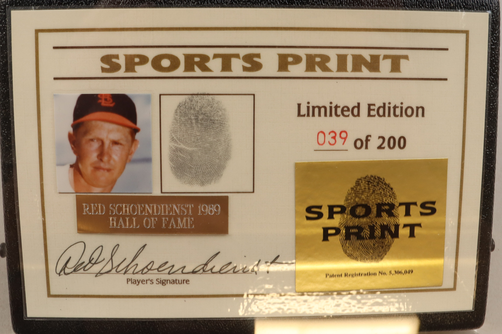 Red Schoendienst Signed LE ONL Baseball Display with Thumbprint & Display Case (Beckett)