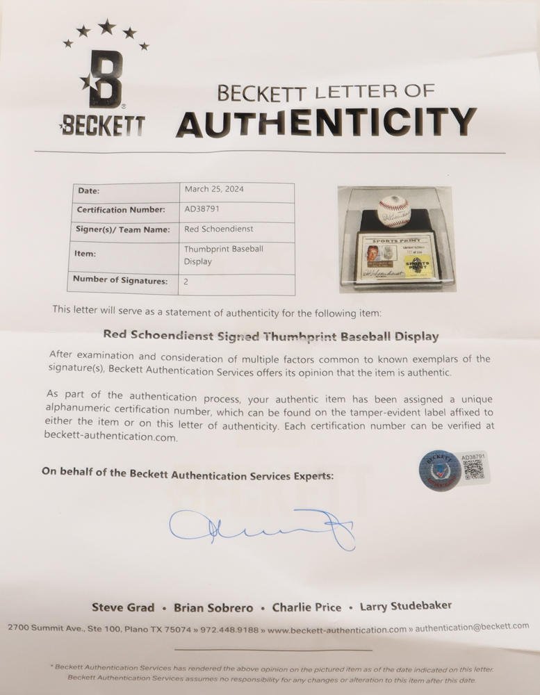 The autograph includes an official Beckett Authentication Services hologram and matching LOA for authenticity purposes.