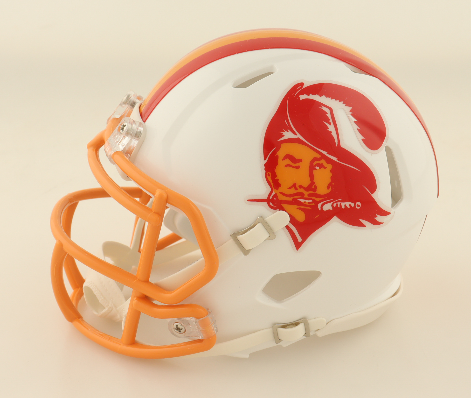 Riddell Tampa Bay Buccaneers Throwback Speed Mini Helmet has been hand-signed by Ronde Barber.
