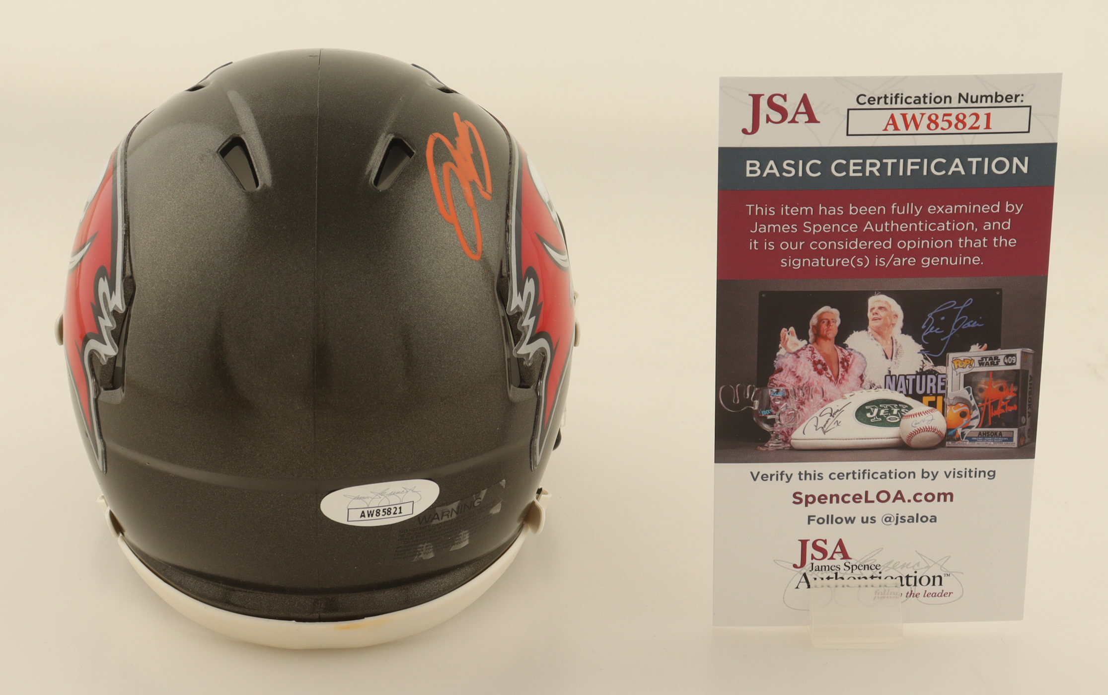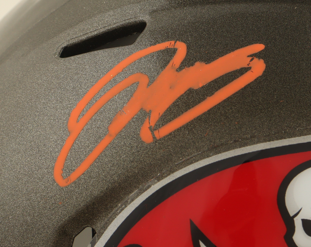 Riddell Tampa Bay Buccaneers slate alternate speed mini helmet has been hand-signed by Yaya Diaby.