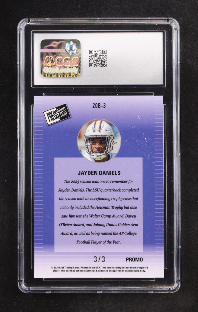 Jayden Daniels 2024 Leaf Collective Promo '00 Press Pass Shimmer Gold #20B3 RC #3/3 (CGC 10)