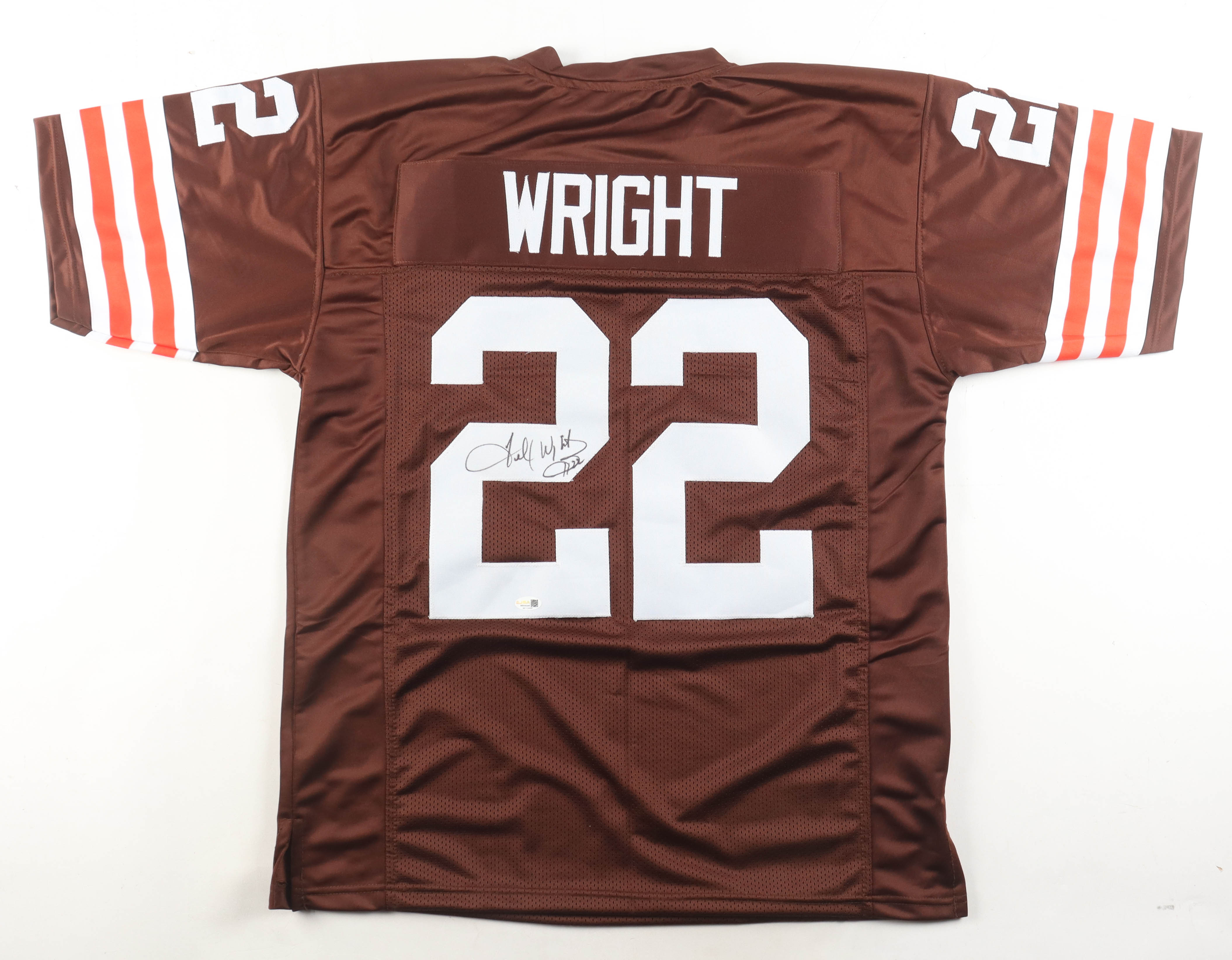 Custom jersey with everything sewn on, size XL. Hand-signed by Felix Wright.