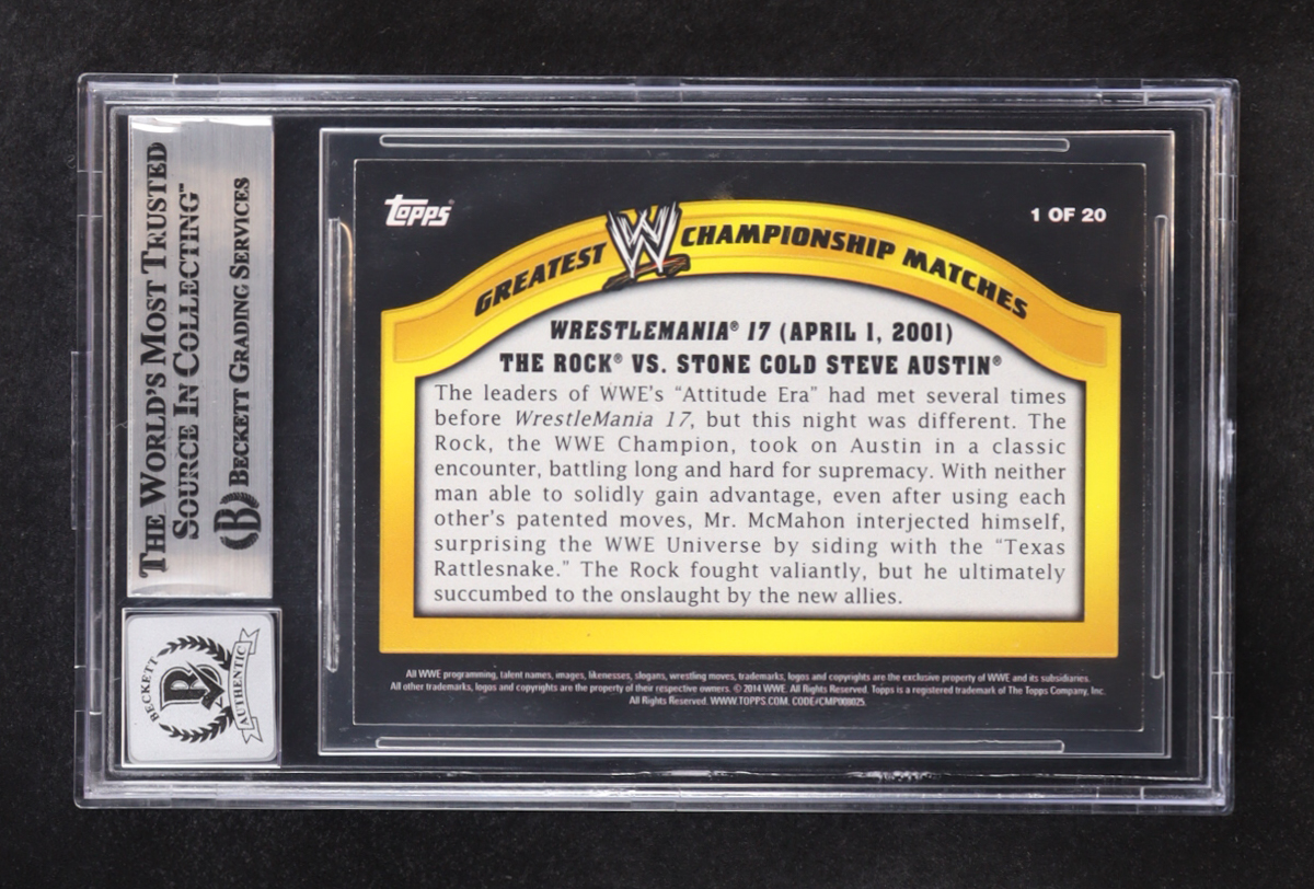 Stone Cold Steve Austin Signed 2014 Topps WWE Greatest Championship Matches #1 WrestleMania 17 The Rock vs. Stone Cold Steve Austin (BGS | Auto 10)