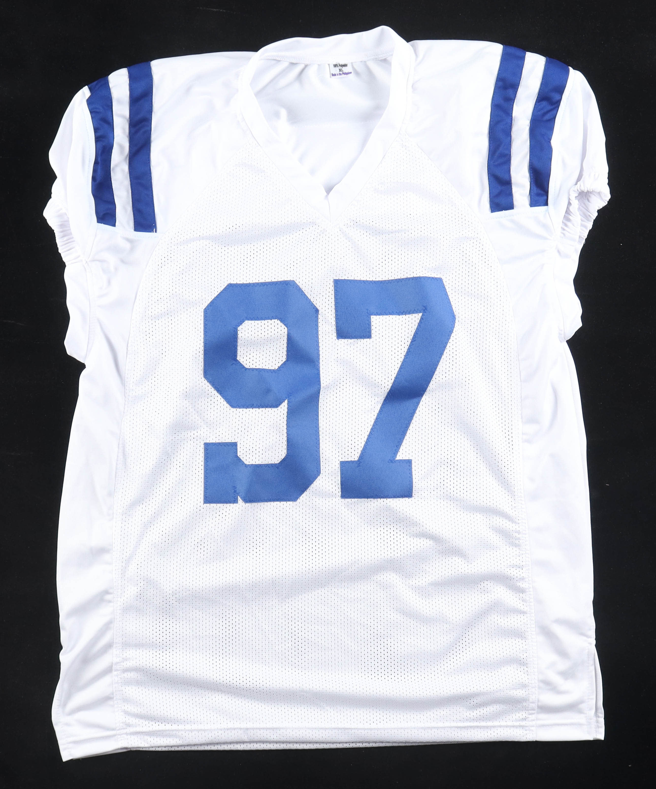Custom jersey with everything sewn on, size XL. Hand-signed by Laiatu Latu.